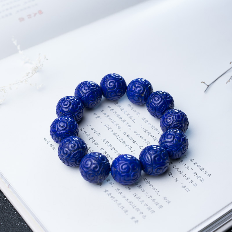 • [名  称] 19.5mm深蓝色青金石回纹珠手串