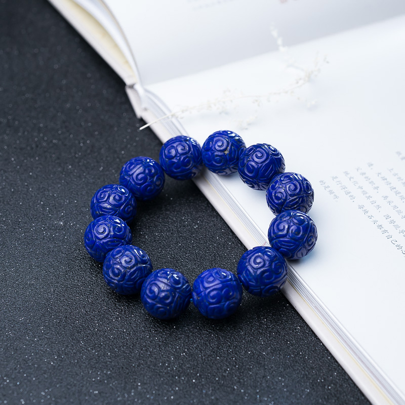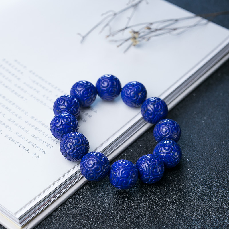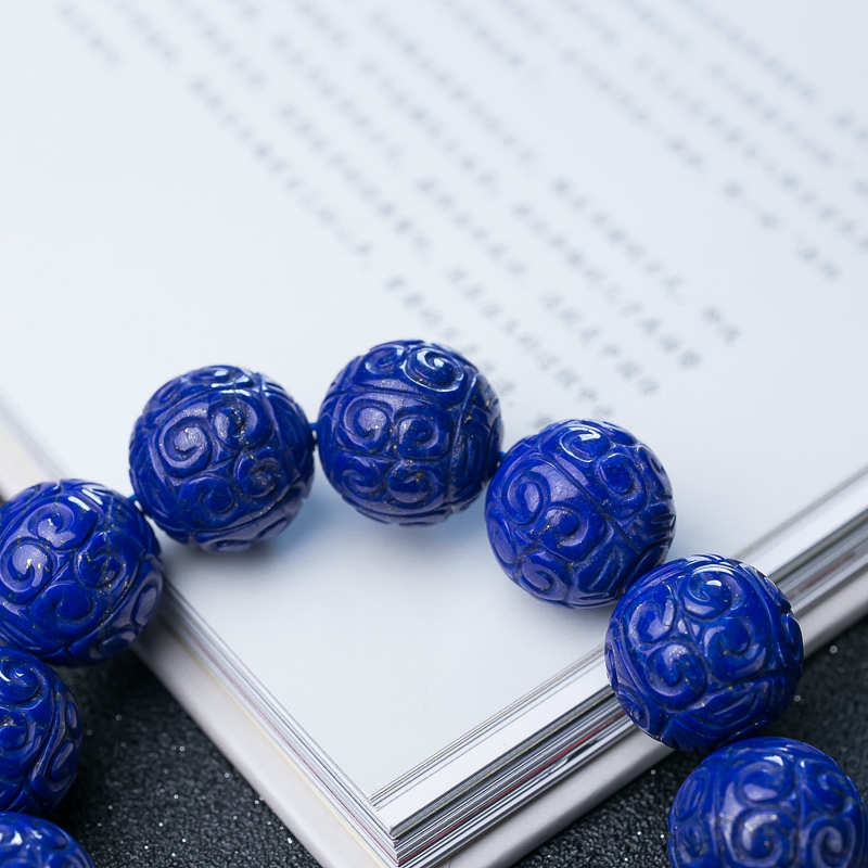 • 19.5mm深蓝色青金石回纹珠手串