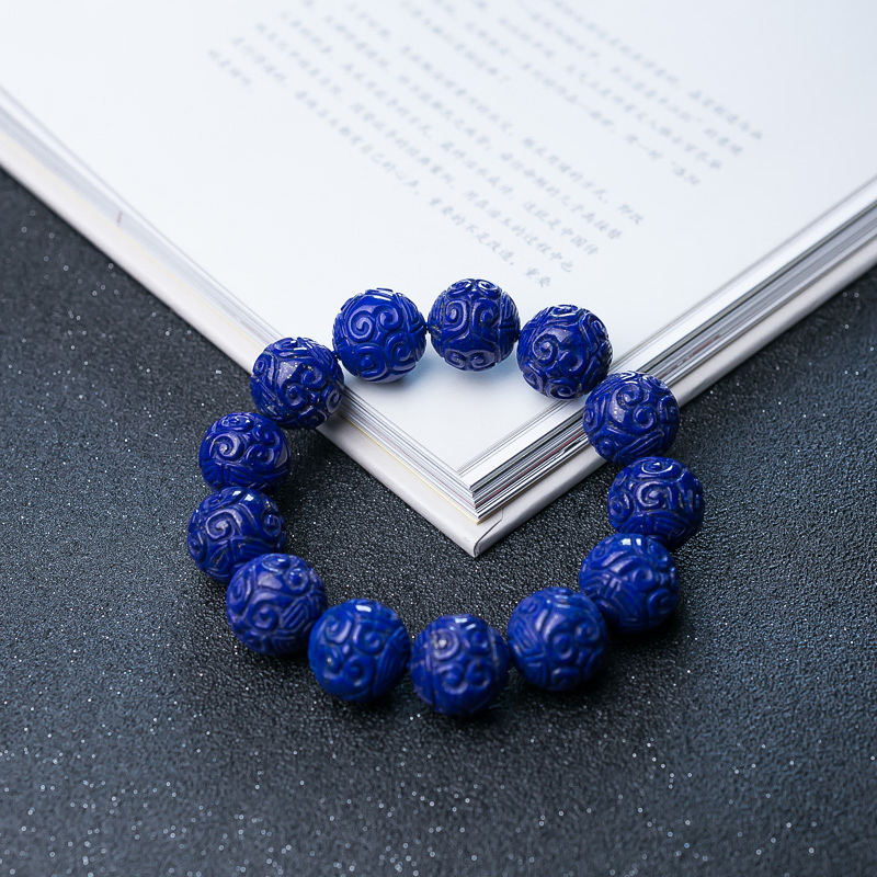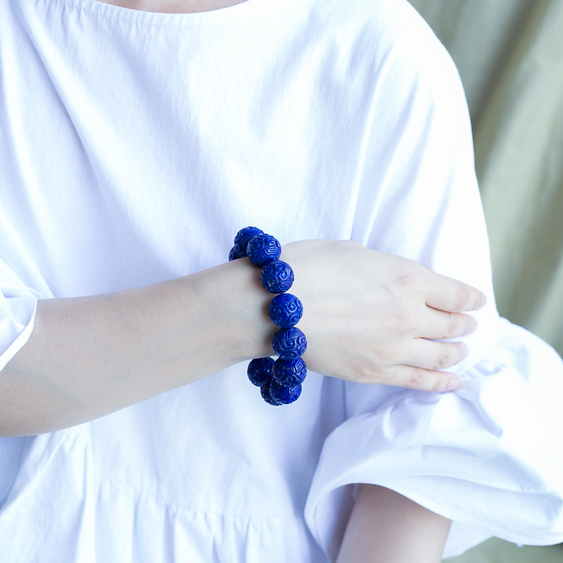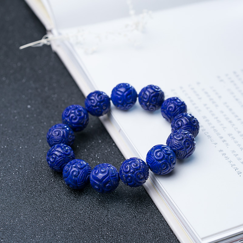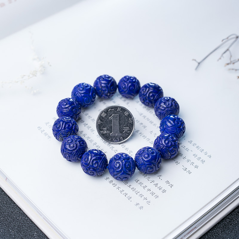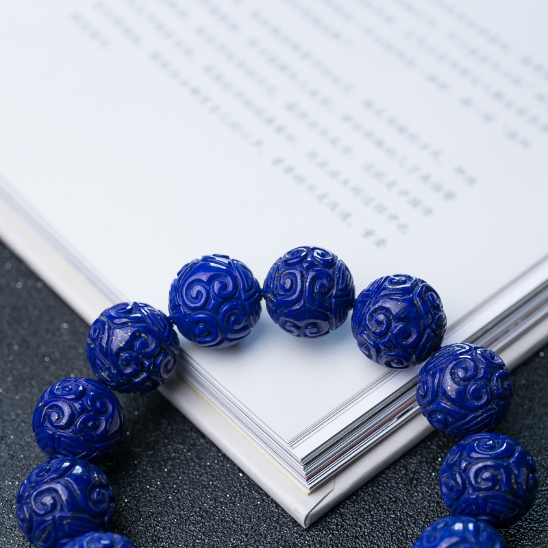 • [名  称] 16.5mm深蓝色青金石回纹珠手串