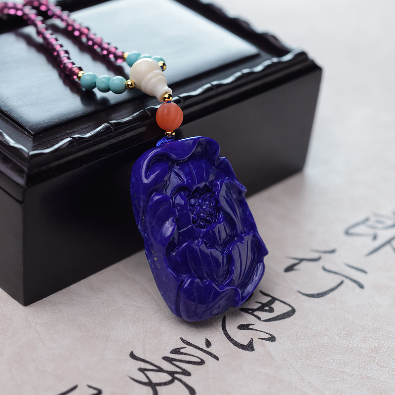 • [名  称] 深蓝色青金石牡丹花吊坠