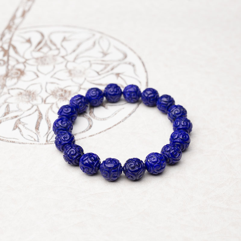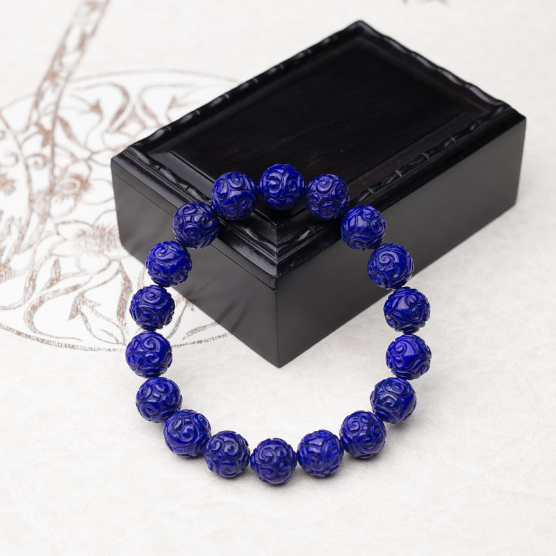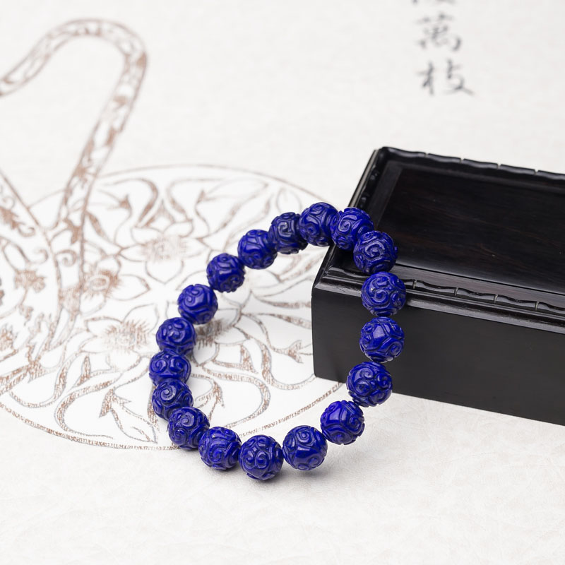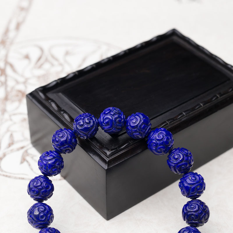 • [名  称] 10.5mm紫蓝色青金石回纹珠单圈手串