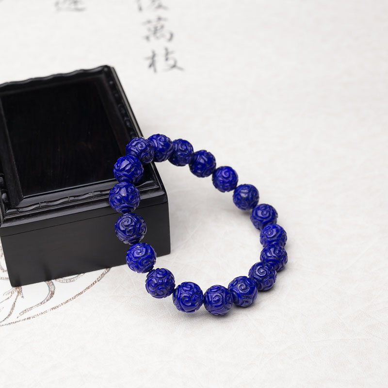 • 10.5mm紫蓝色青金石回纹珠单圈手串