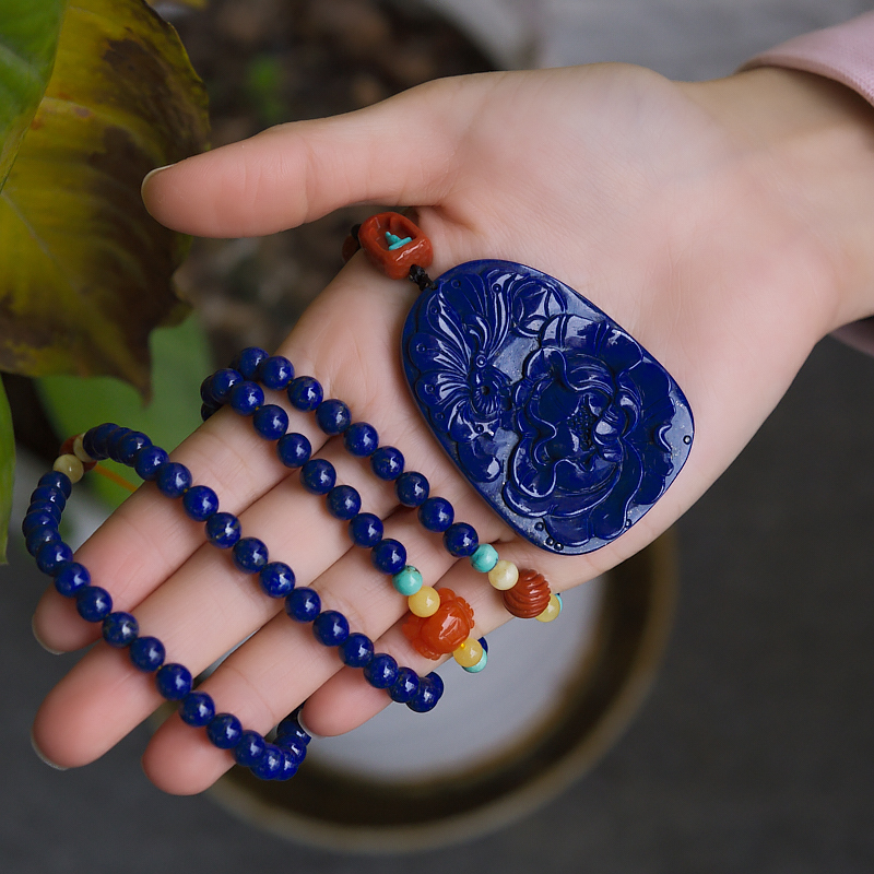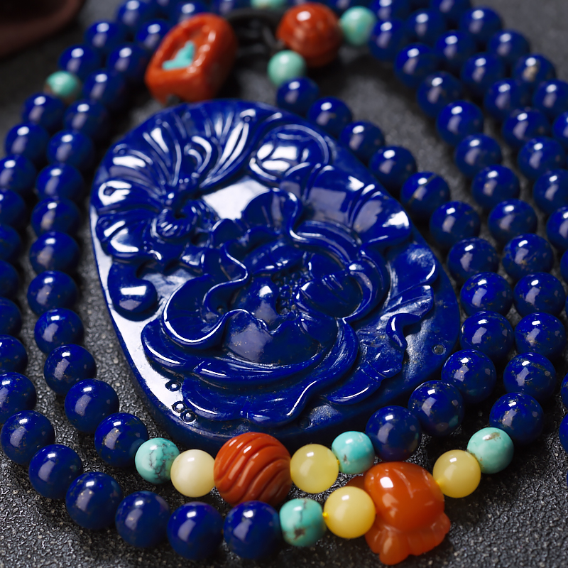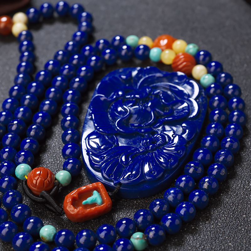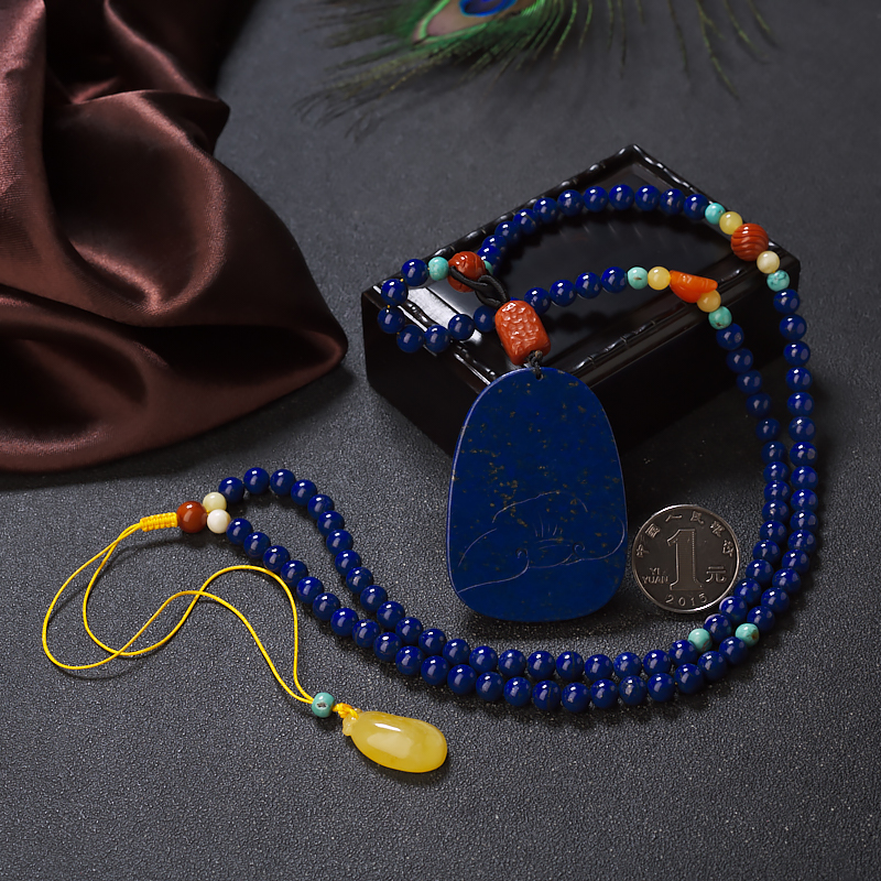 青金石珠径6.5mm,配链全长73cm,青金石珠数98颗