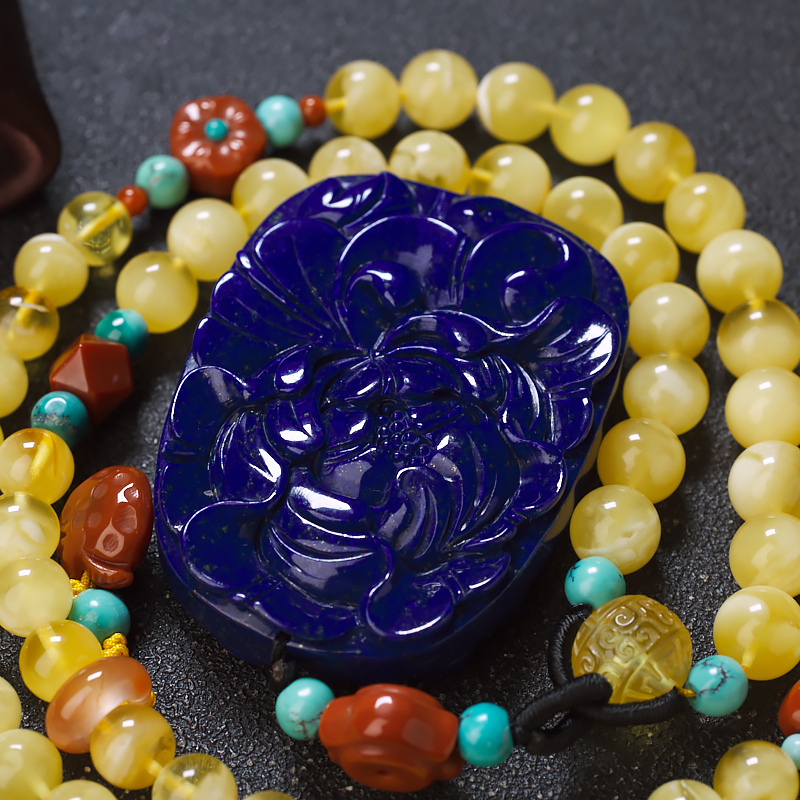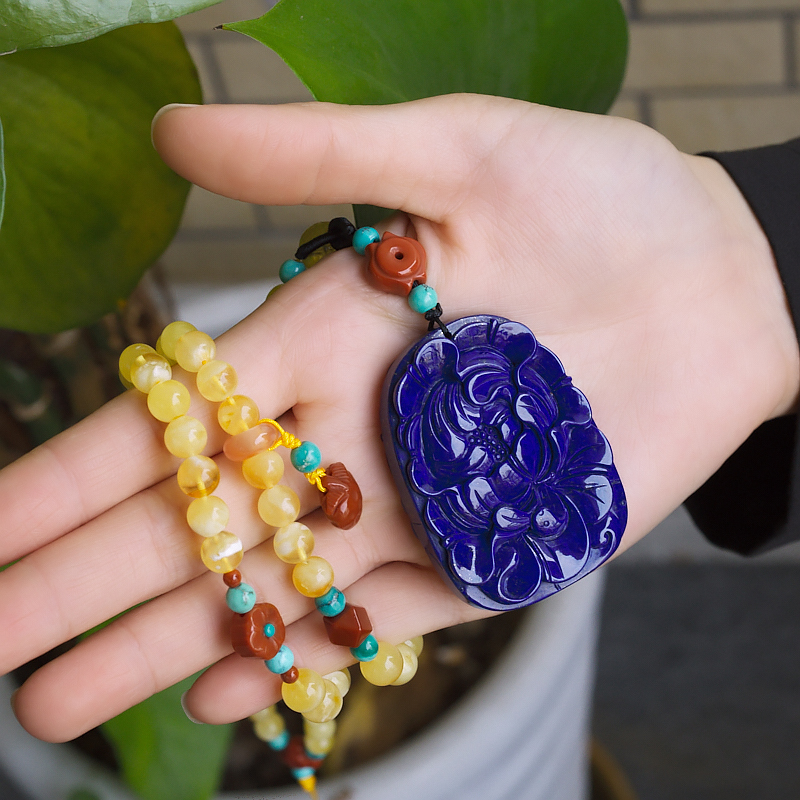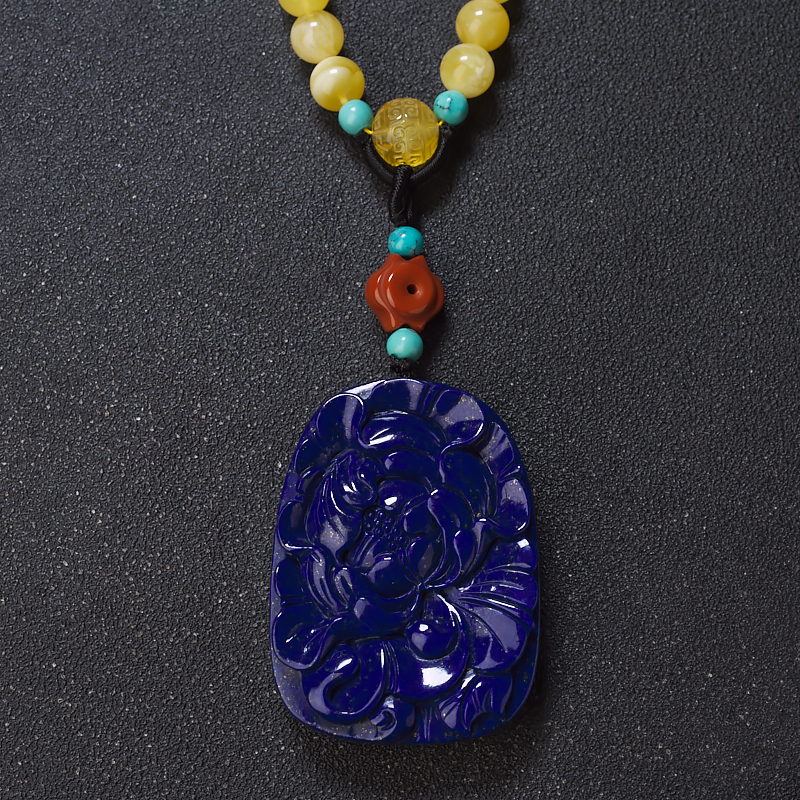 • 深蓝色青金石牡丹花吊坠