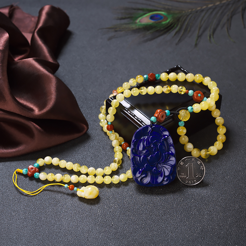• [名  称] 深蓝色青金石牡丹花吊坠