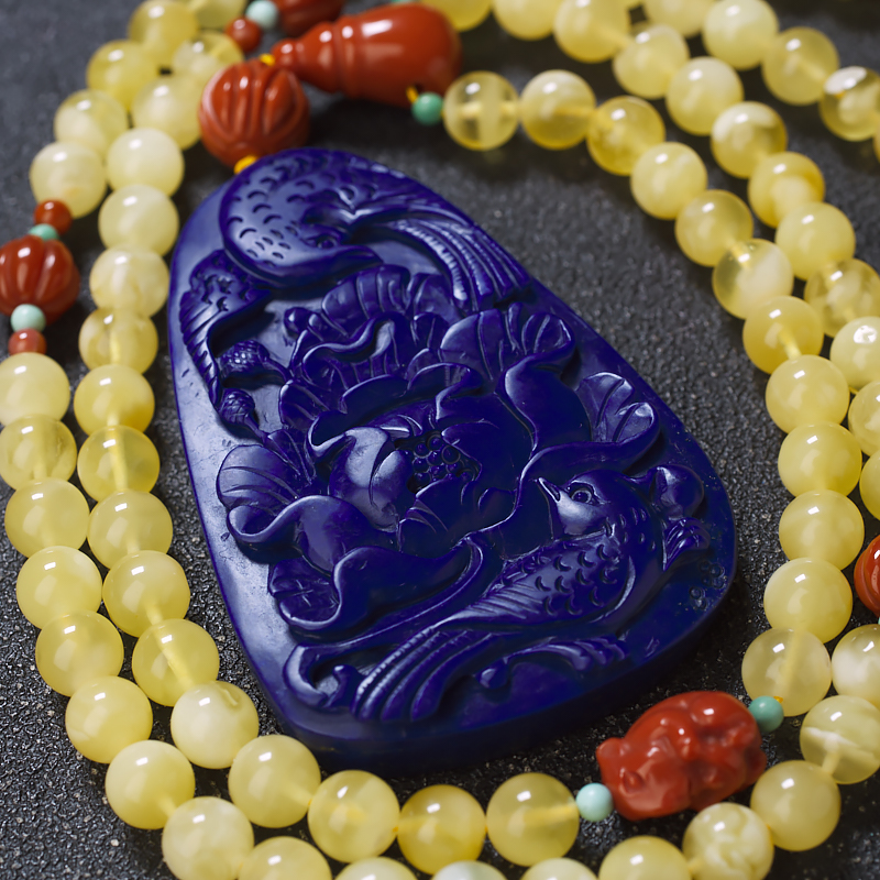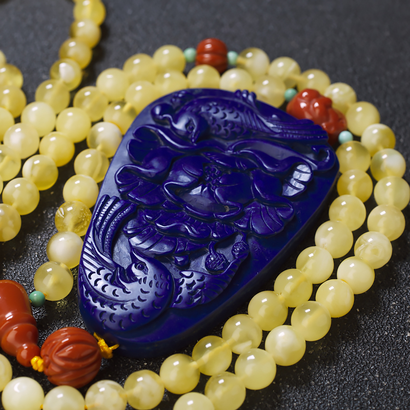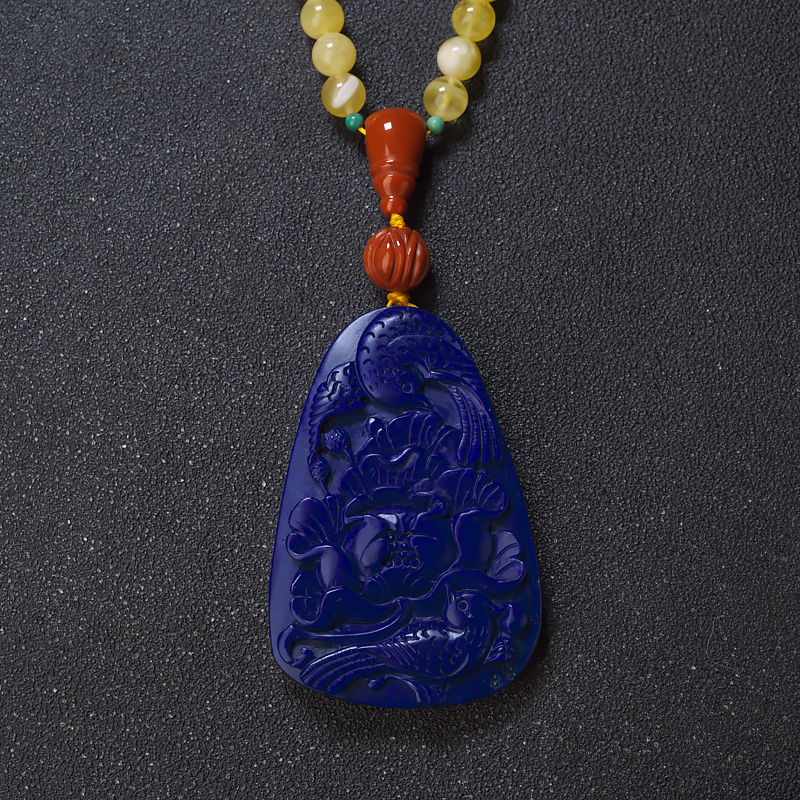• [名  称] 紫蓝色青金石鸟语花香吊坠