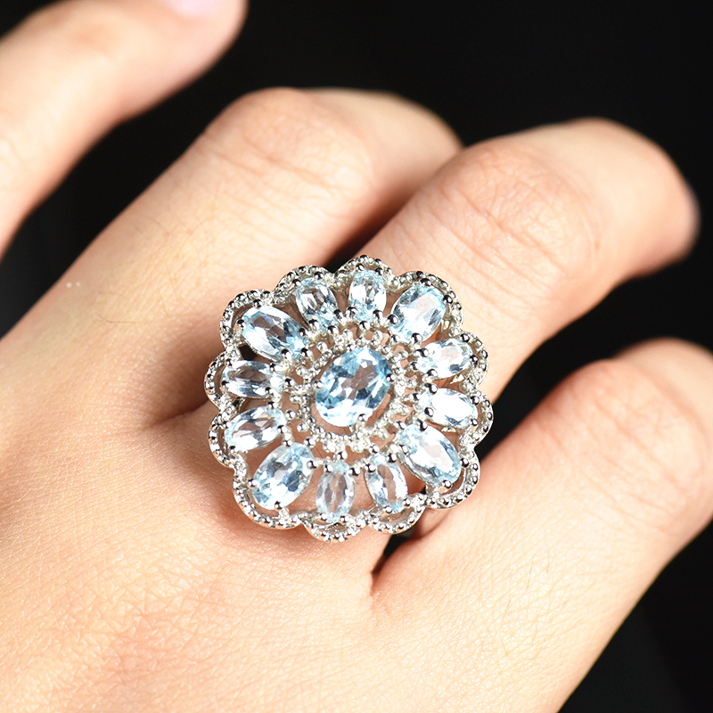 • 银镶蓝色托帕石戒指