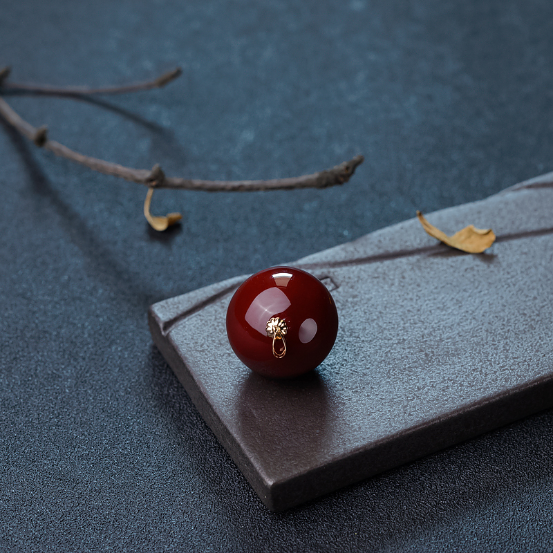 • 18K金镶沙丁深红珊瑚拼接圆珠吊坠-红掌柜