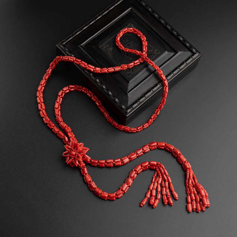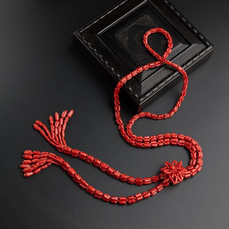 • 意大利沙丁红珊瑚三股毛衣链-红掌柜