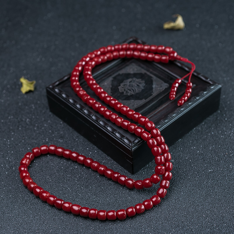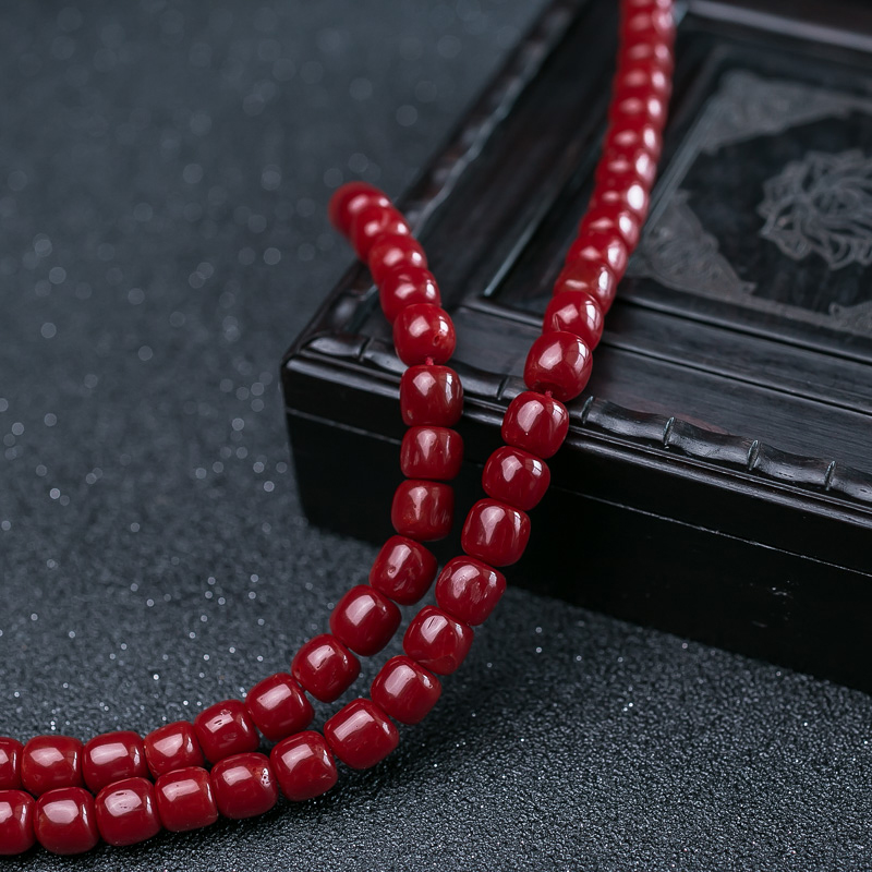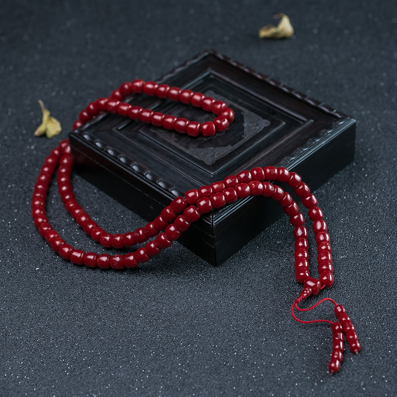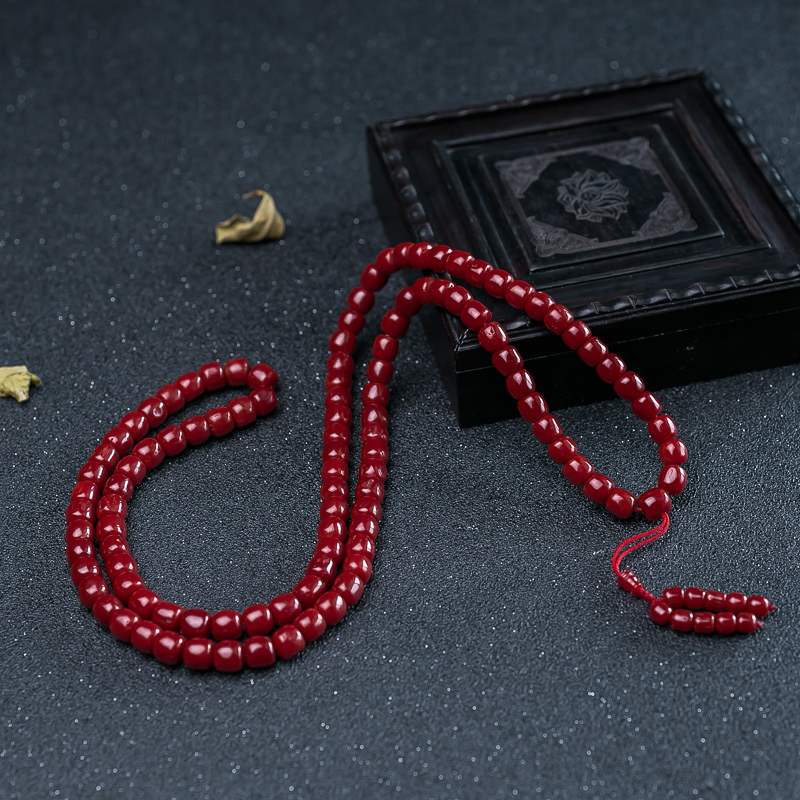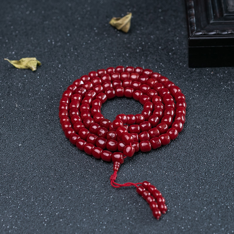 • 沙丁牛血红珊瑚桶珠108佛珠