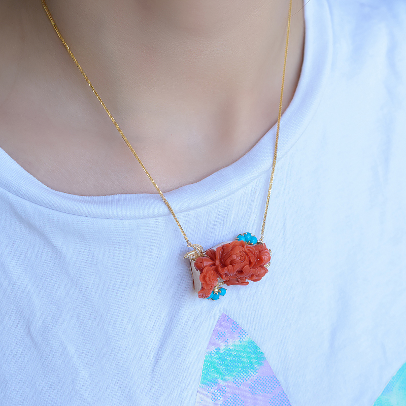 • 18K沙丁珊瑚花项链