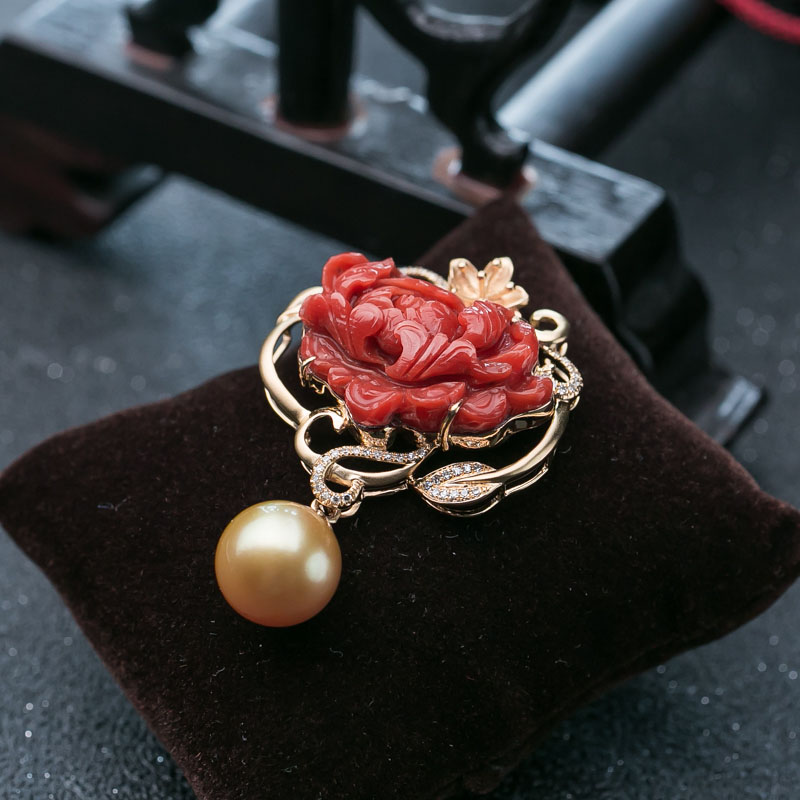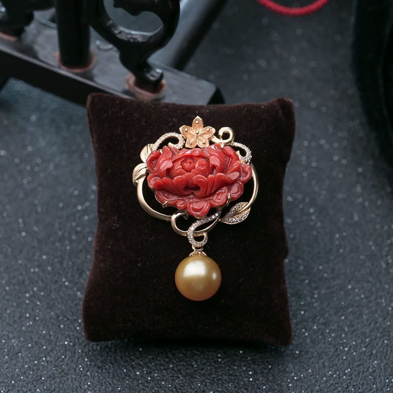 • [名  称] 18K沙丁珊瑚牡丹花吊坠