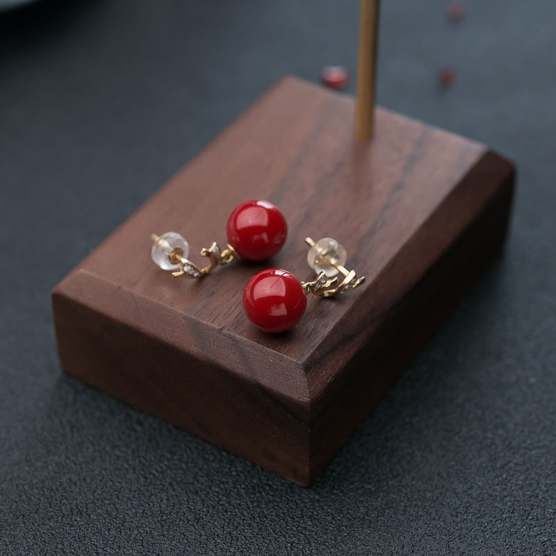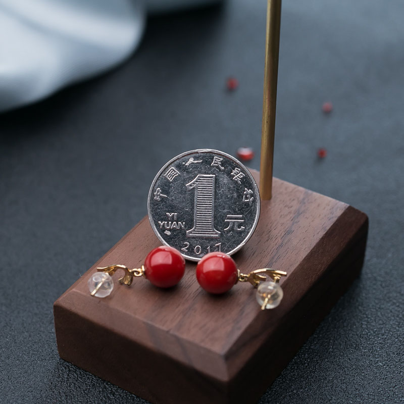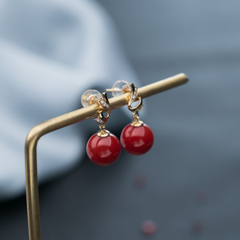 • 18K沙丁珊瑚圆珠耳坠