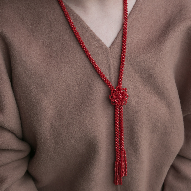 • 沙丁珊瑚圆珠毛衣链