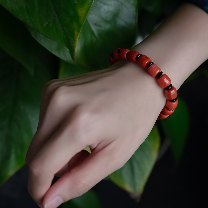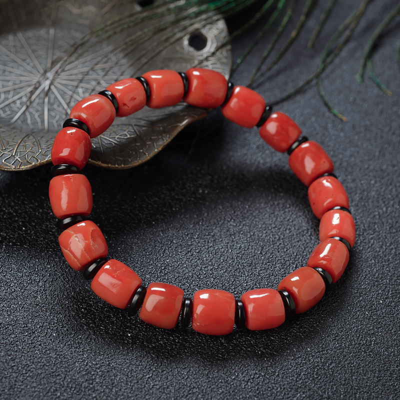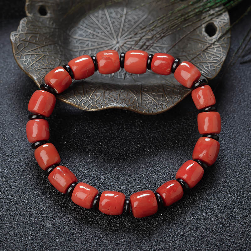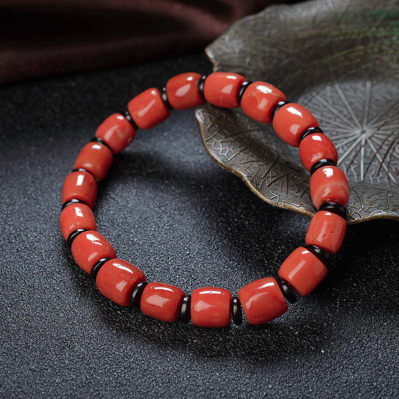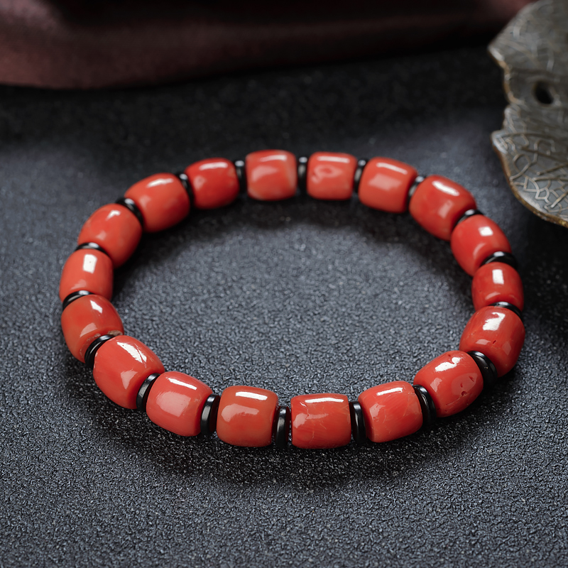 • 沙丁珊瑚桶珠单圈手串