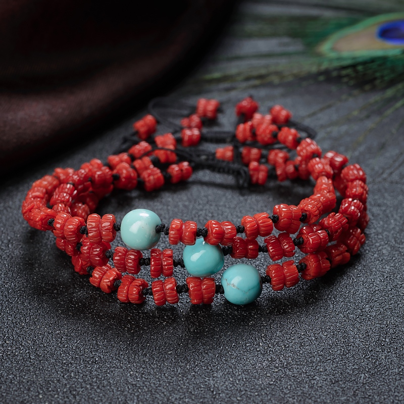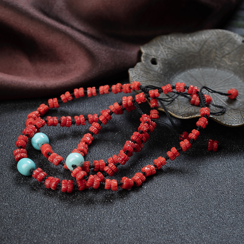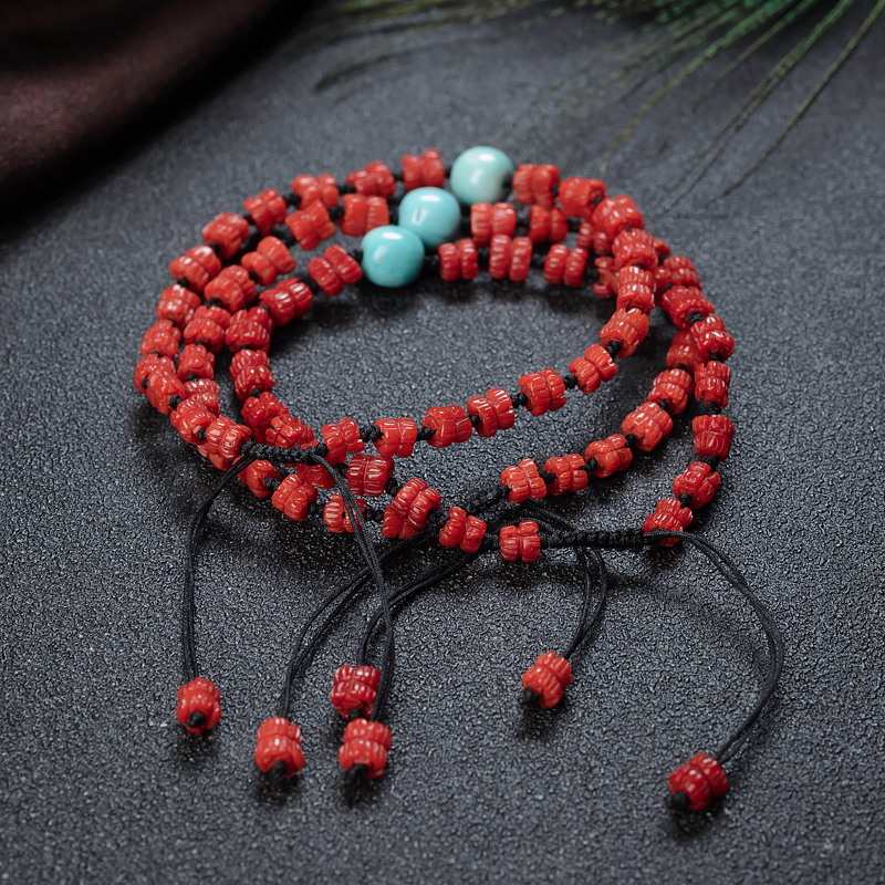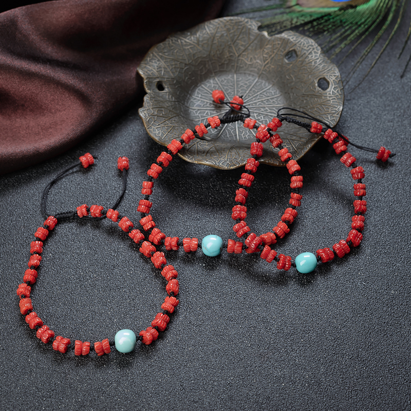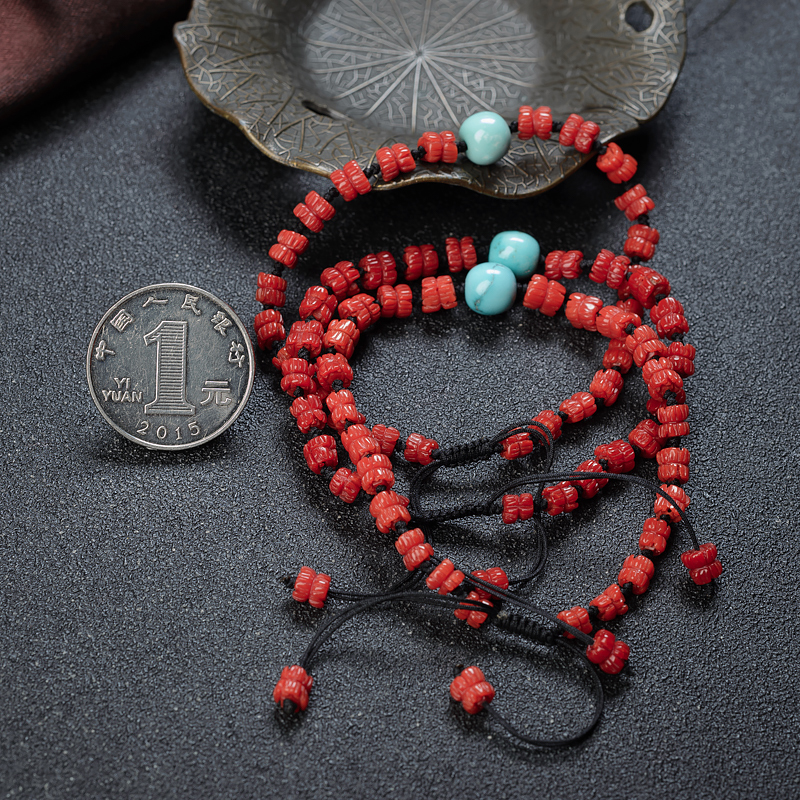 • 沙丁珊瑚莲花珠单圈手串(单件)