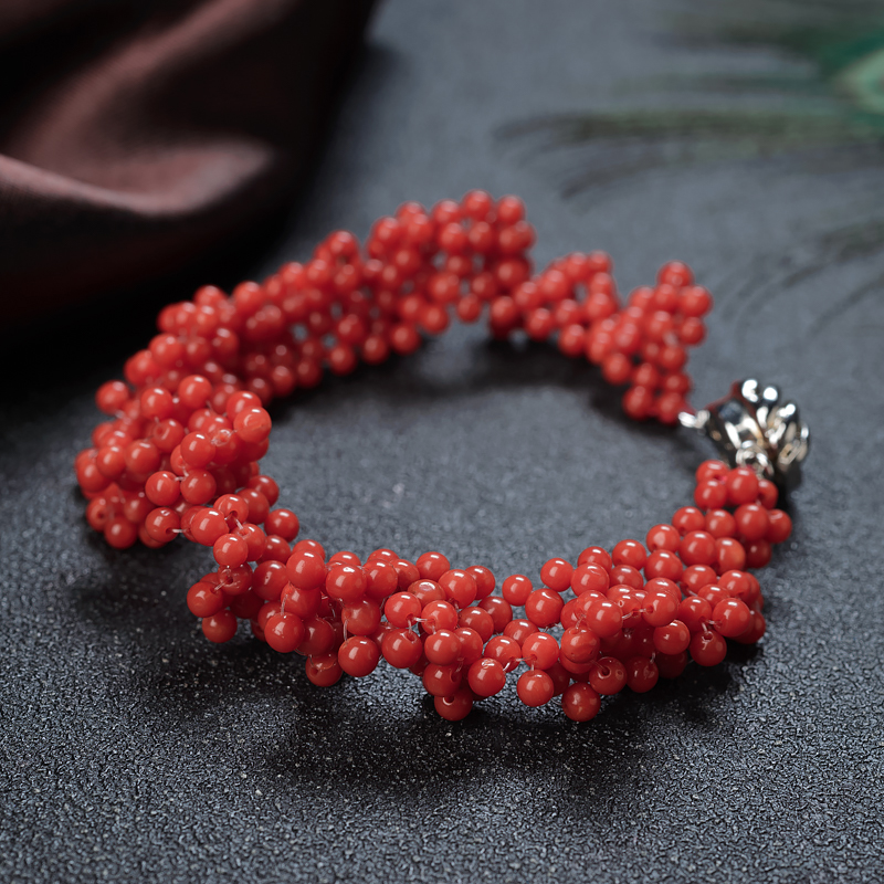 • 3mm沙丁珊瑚圆珠编织手链
