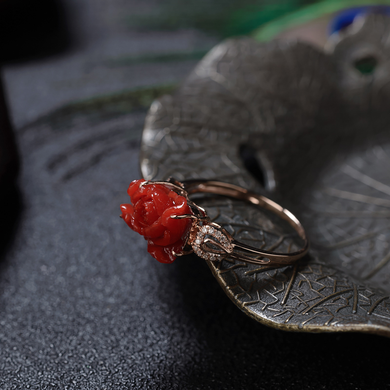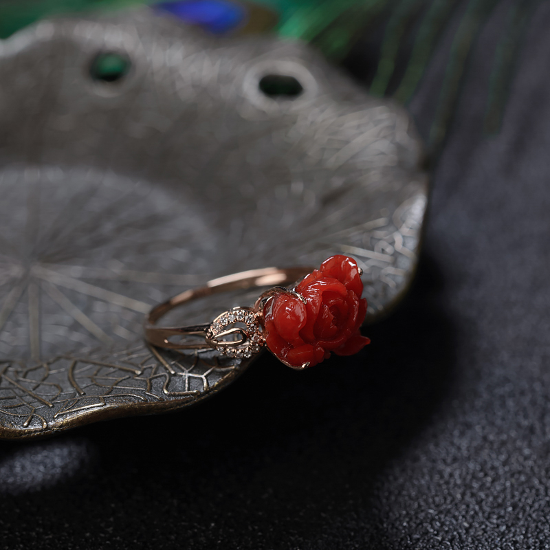 • [名  称] 18K沙丁珊瑚牡丹花戒指