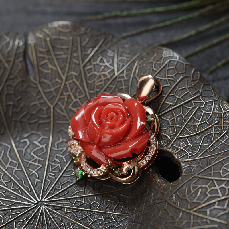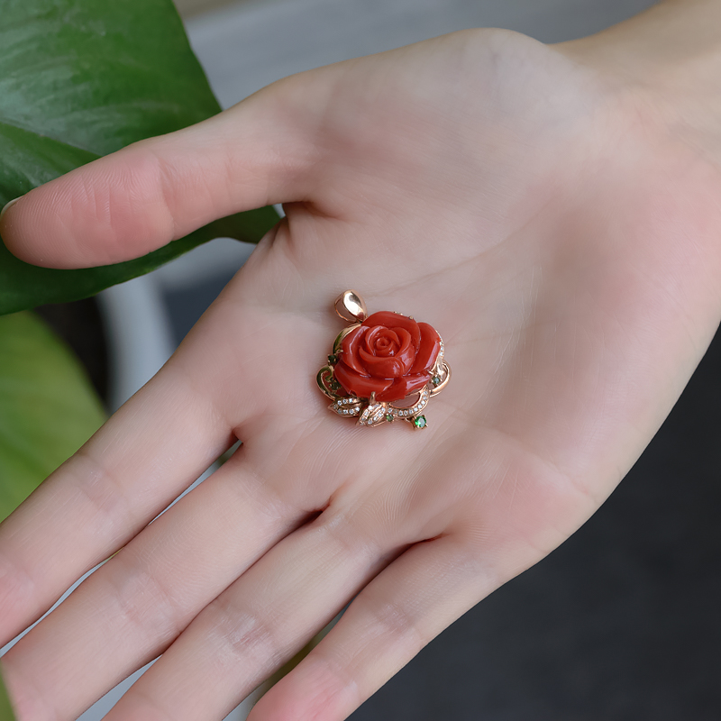 • [名  称] 18K沙丁珊瑚玫瑰花吊坠