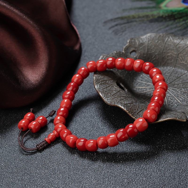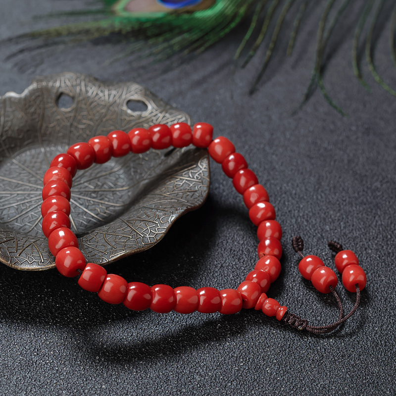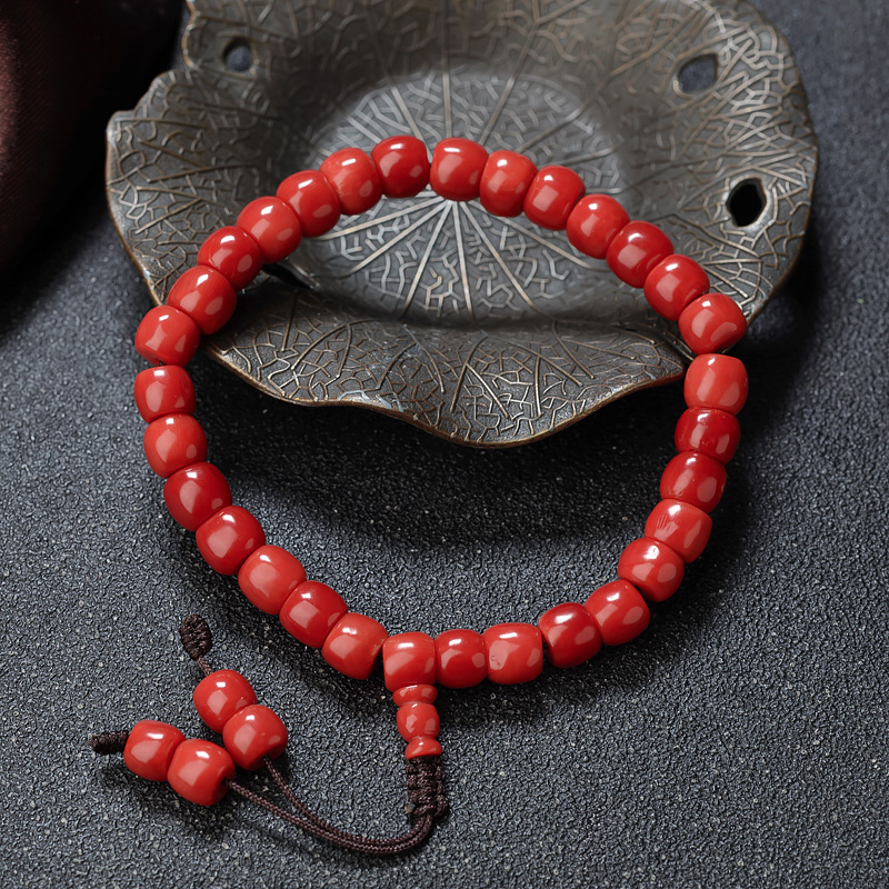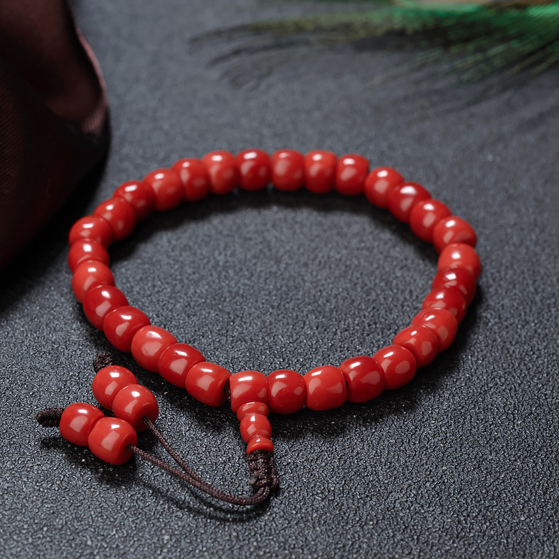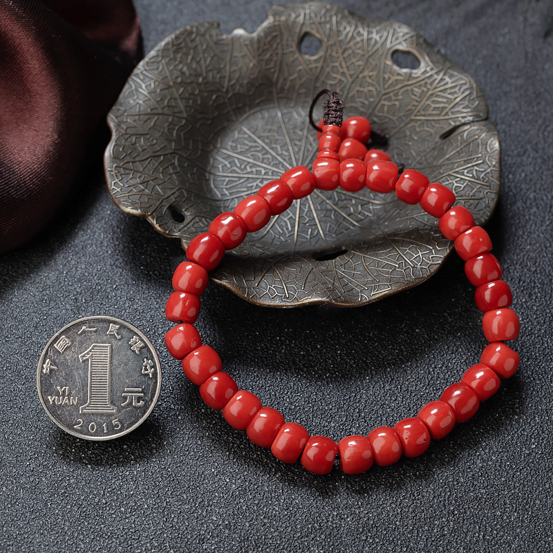 • 沙丁珊瑚桶珠单圈手串