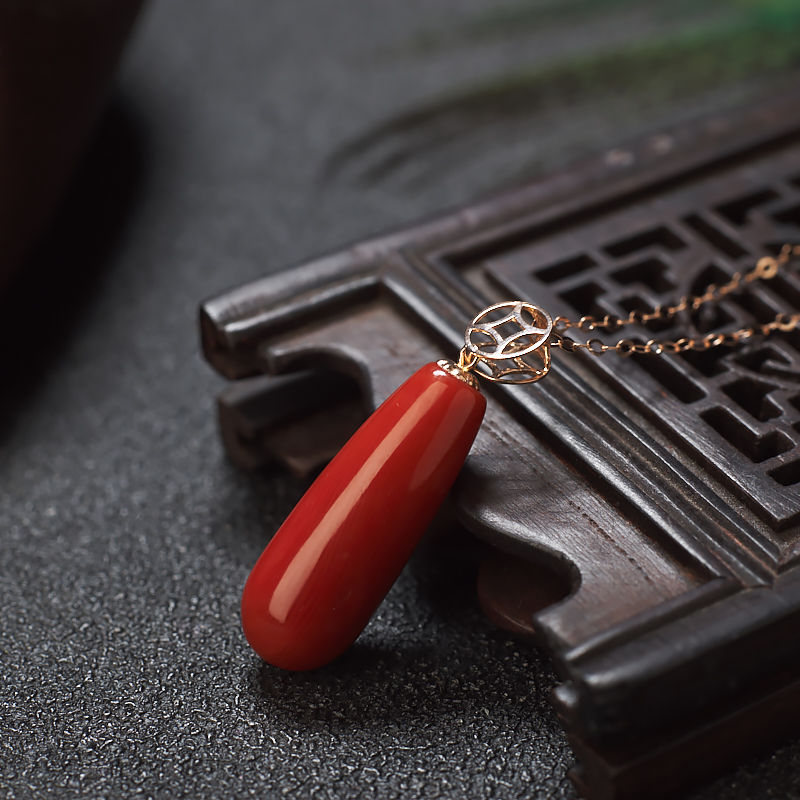 • [名  称] 18K沙丁珊瑚水滴吊坠