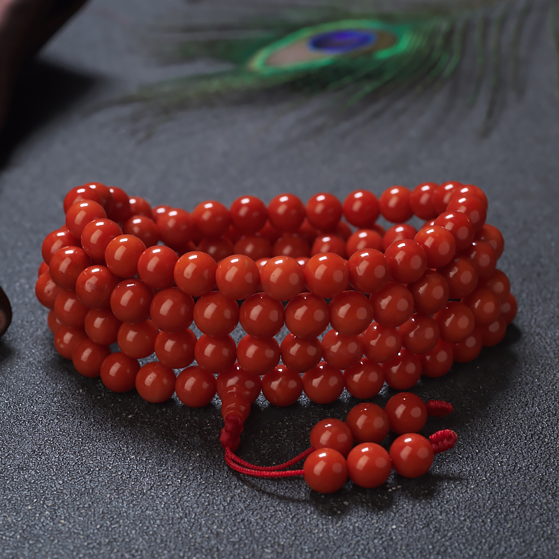 • 7.5mm沙丁珊瑚桶珠108佛珠