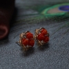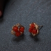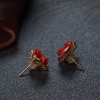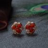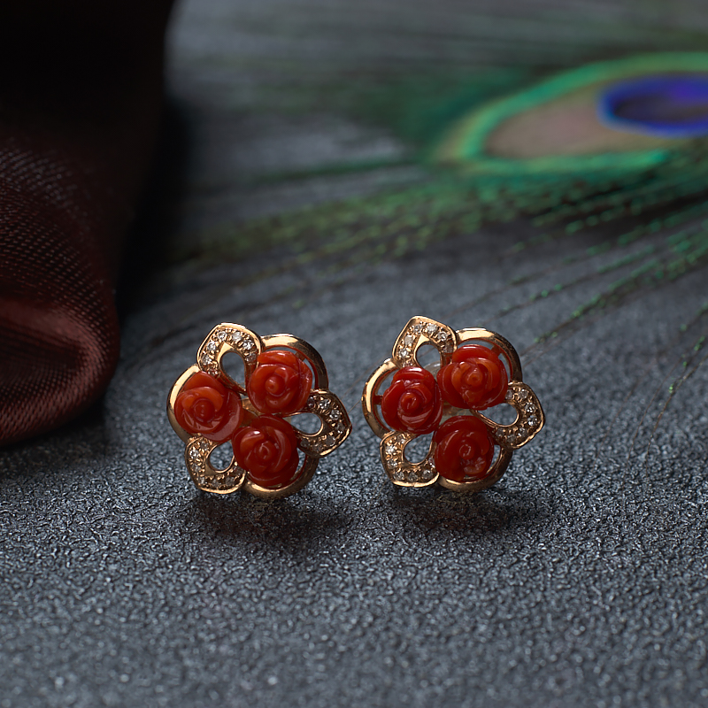 • 18K沙丁牛血红珊瑚花朵耳钉
