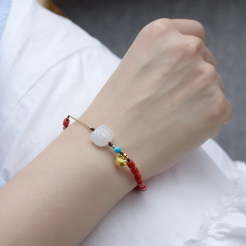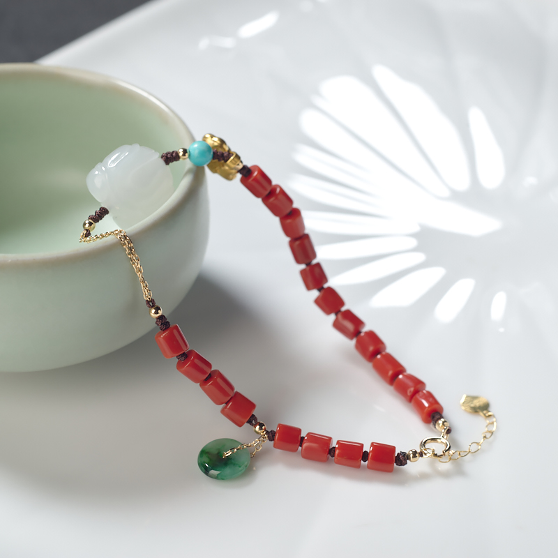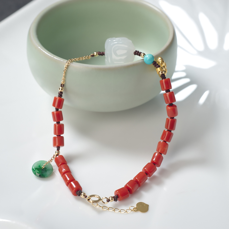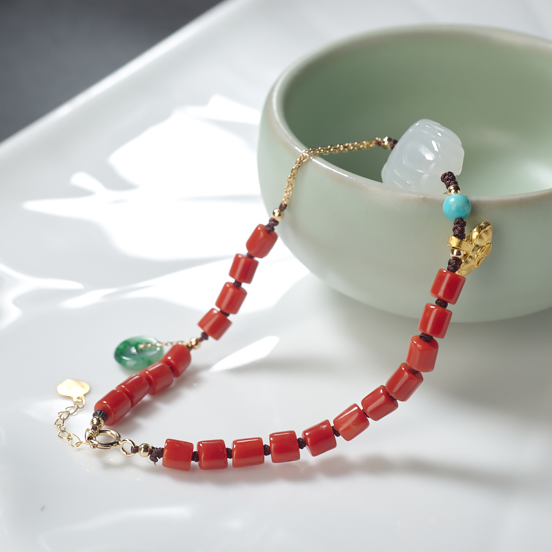 • 沙丁珊瑚桶珠手链