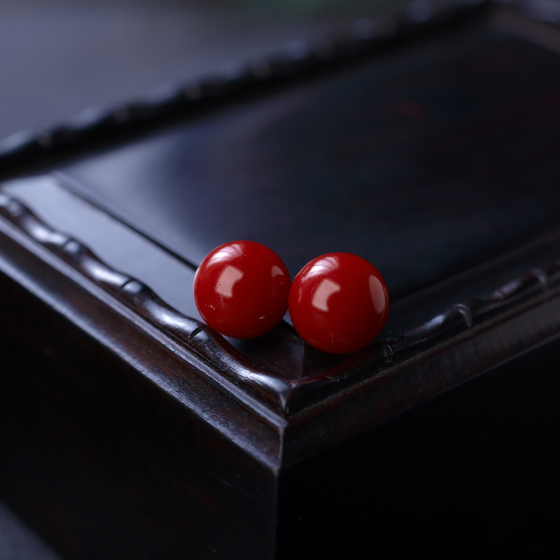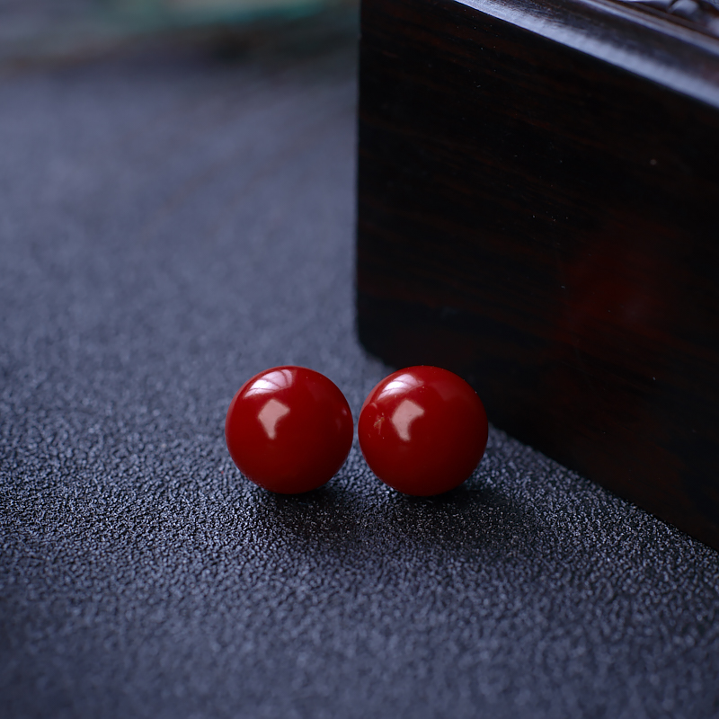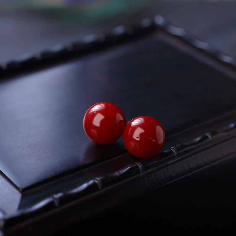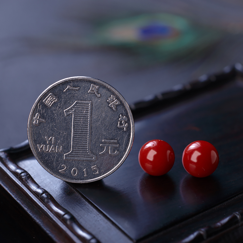 • 8.5mm沙丁牛血红珊瑚圆珠(两件)
