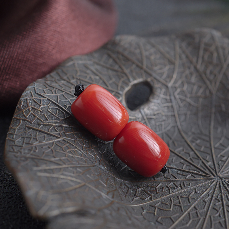 • 沙丁牛血红珊瑚桶珠(两件)