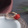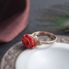 • 18K沙丁牛血红珊瑚牡丹花戒指