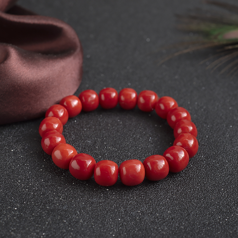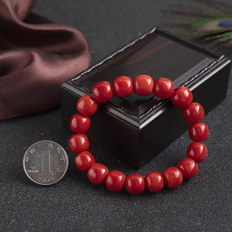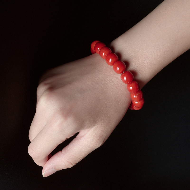• 沙丁珊瑚桶珠单圈手串