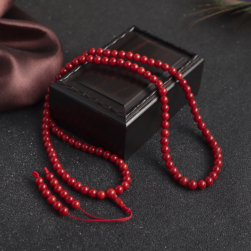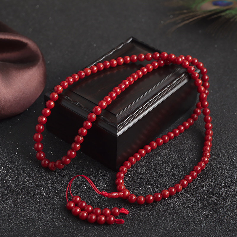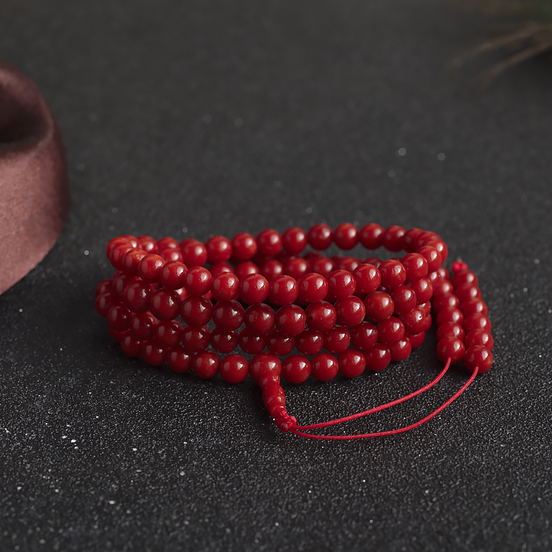 • 5.5mm沙丁牛血红珊瑚多圈手串