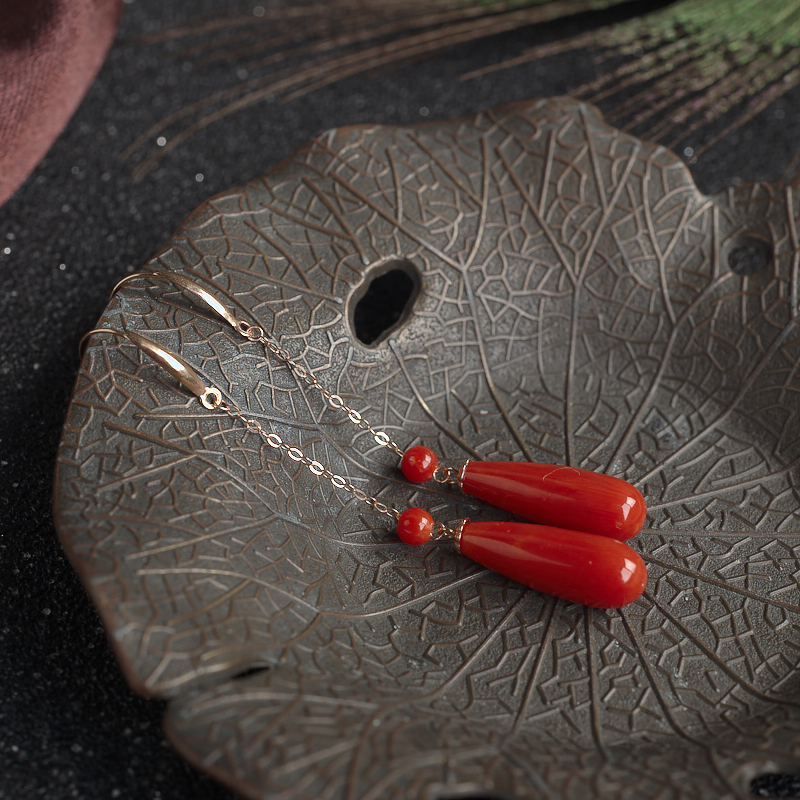 • [名  称] 18K沙丁珊瑚水滴耳环