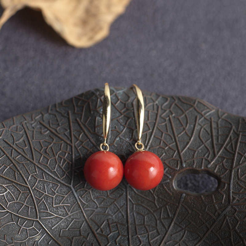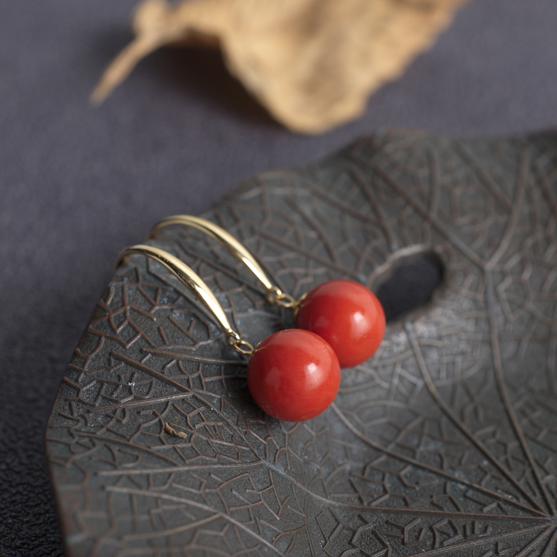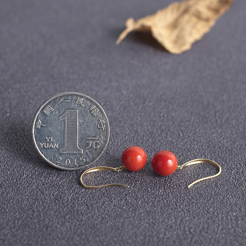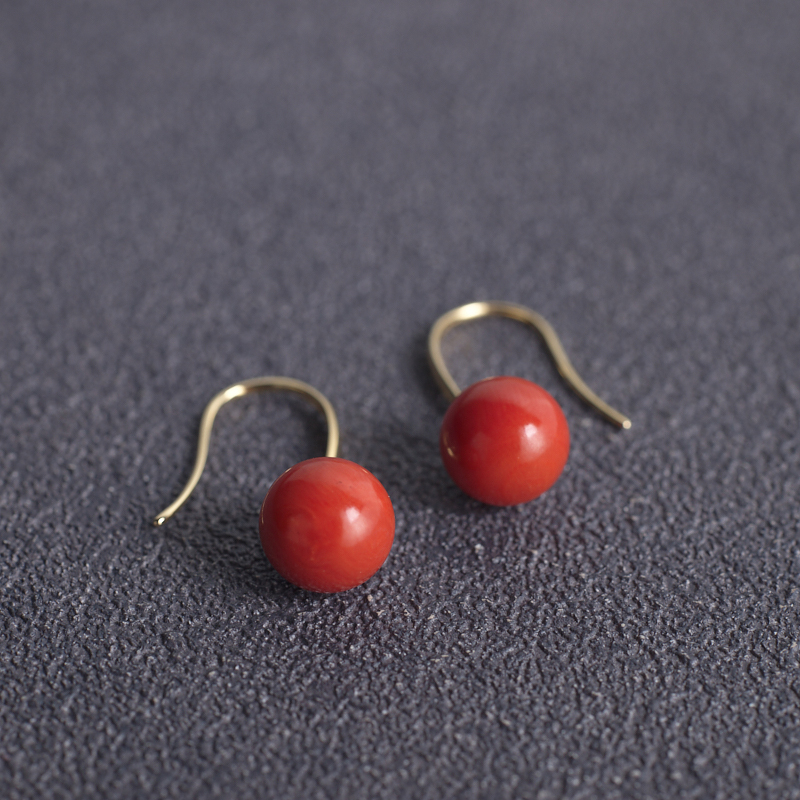 • [名  称] 18K沙丁珊瑚圆珠耳环