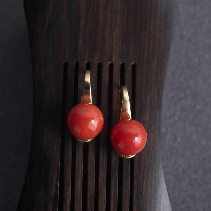 • [名  称] 18K沙丁珊瑚圆珠耳环