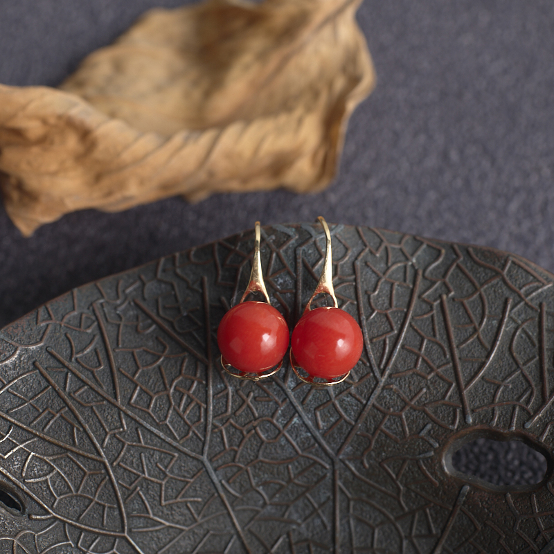 • [名  称] 18K沙丁珊瑚圆珠耳环