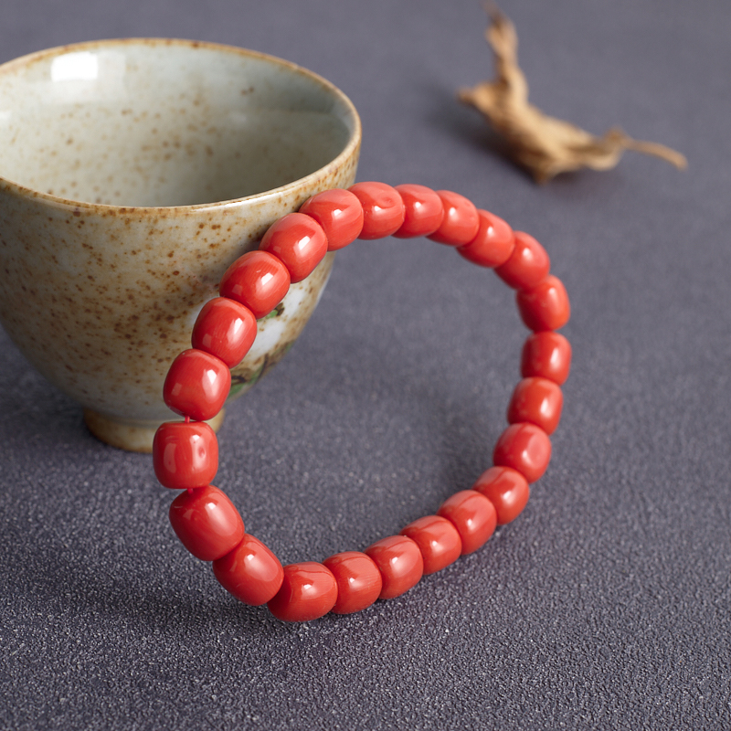• 沙丁珊瑚桶珠单圈手串