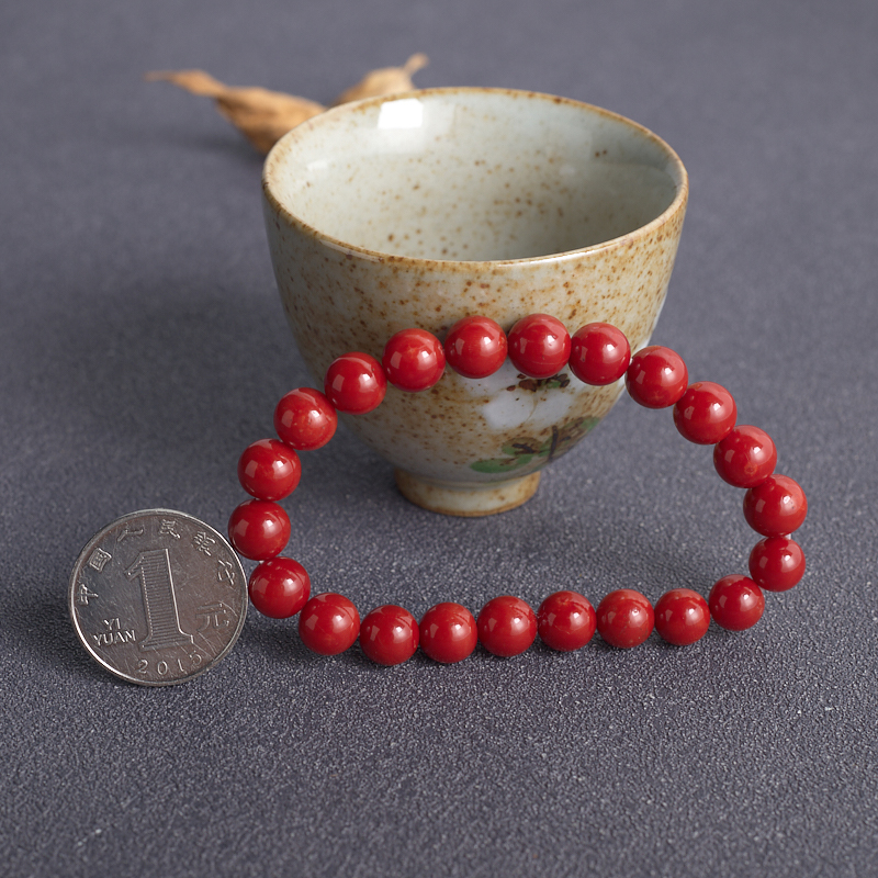 • 8.5mm沙丁牛血红珊瑚单圈手串