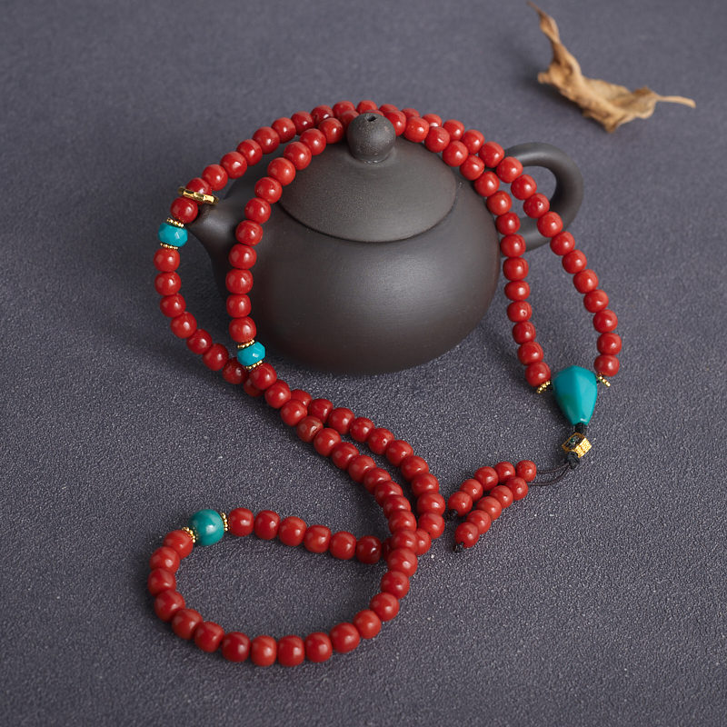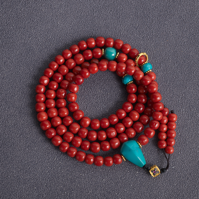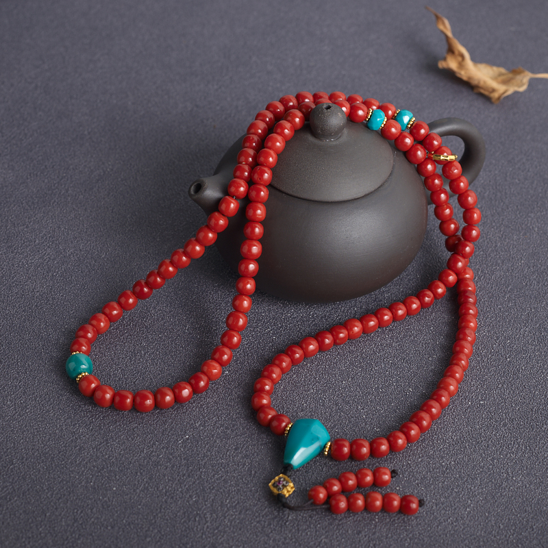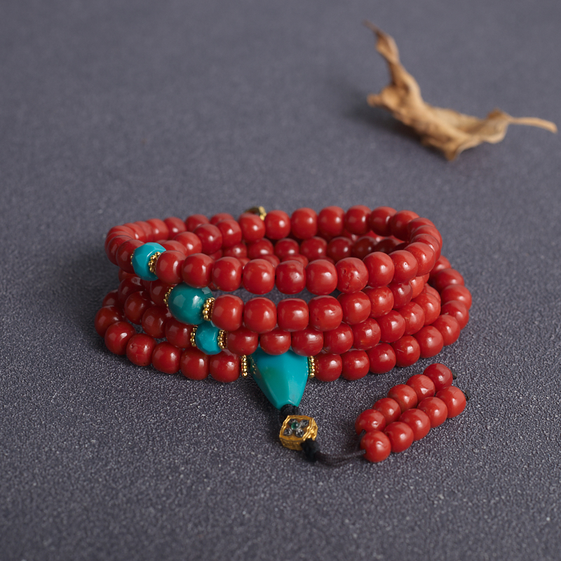 • 沙丁珊瑚桶珠多圈手串