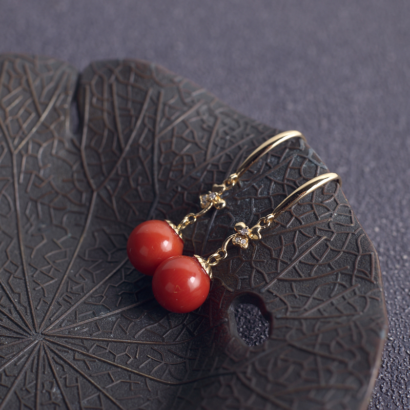 • [名  称] 18K沙丁珊瑚圆珠耳环