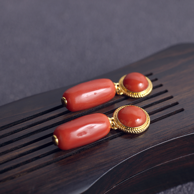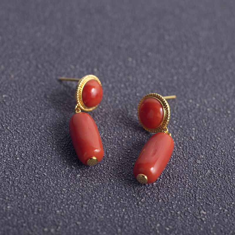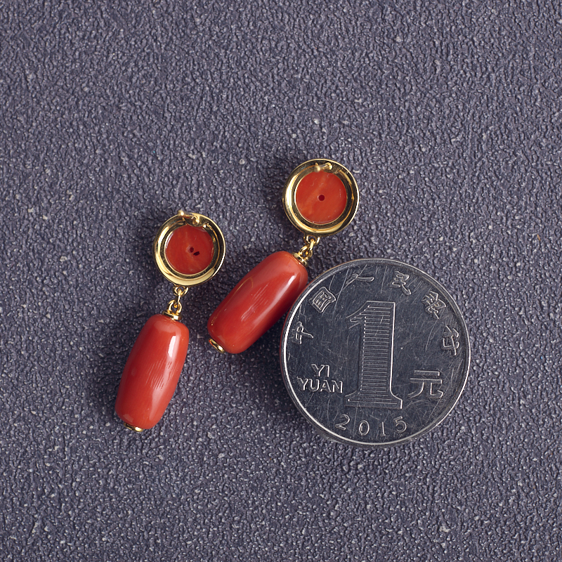 • [名  称] 18K沙丁珊瑚桶珠耳坠