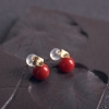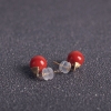 • 18K沙丁牛血红珊瑚圆珠耳钉