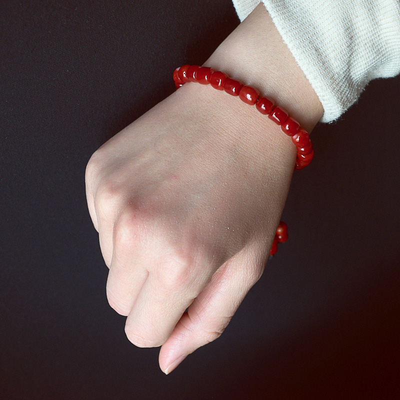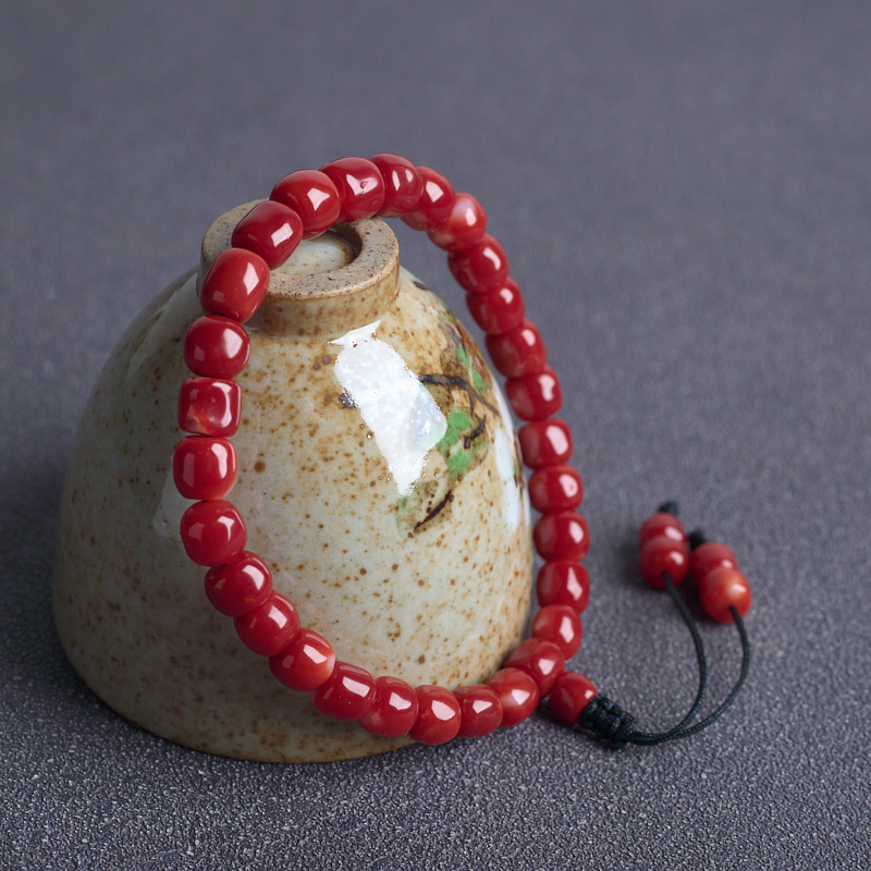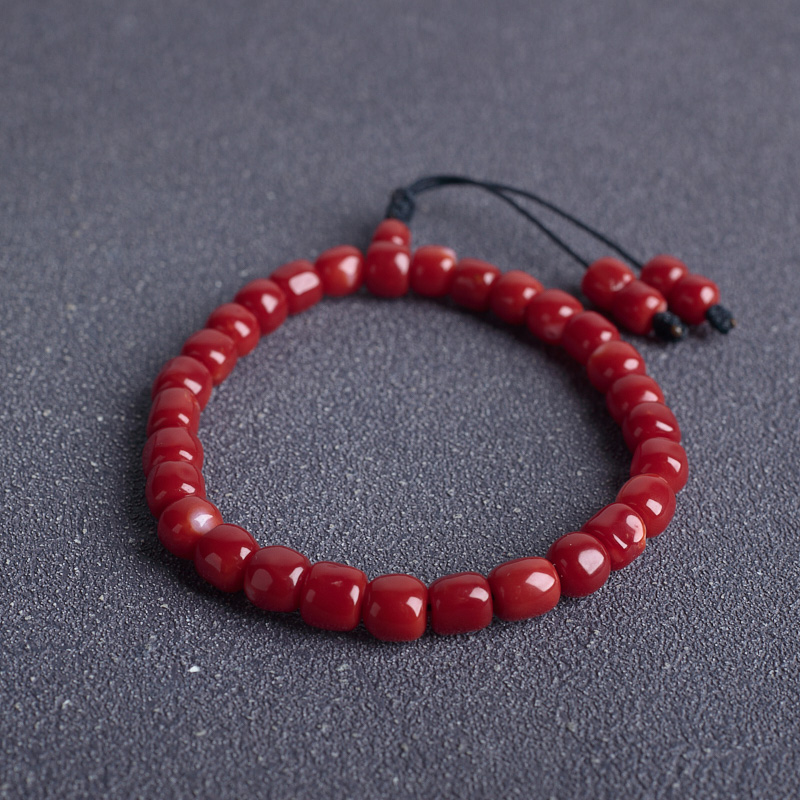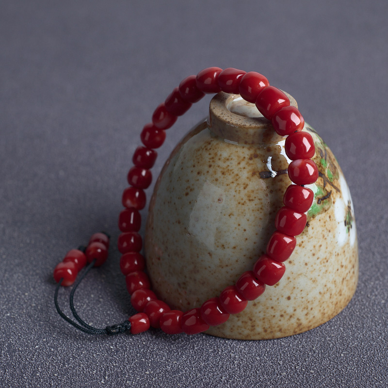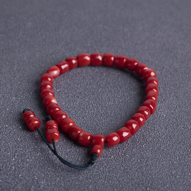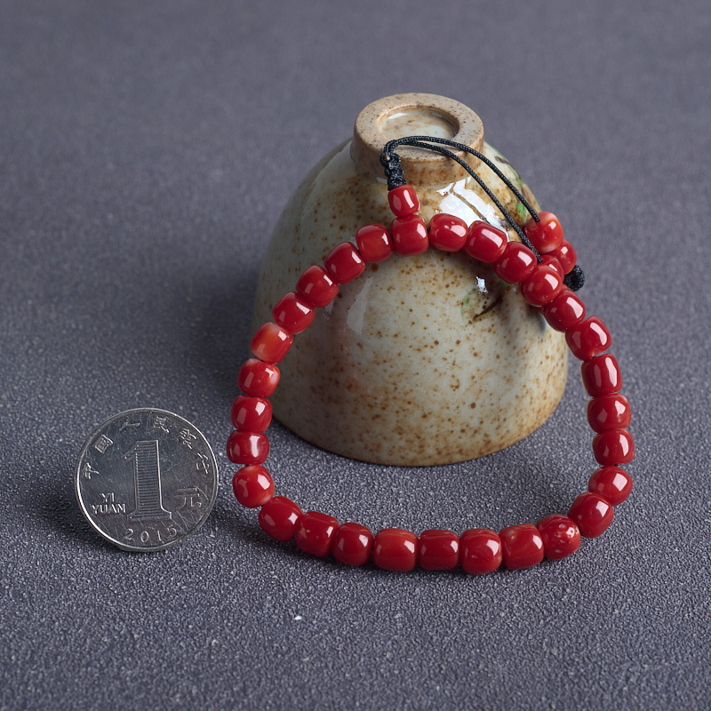 • 沙丁牛血红珊瑚桶珠单圈手串