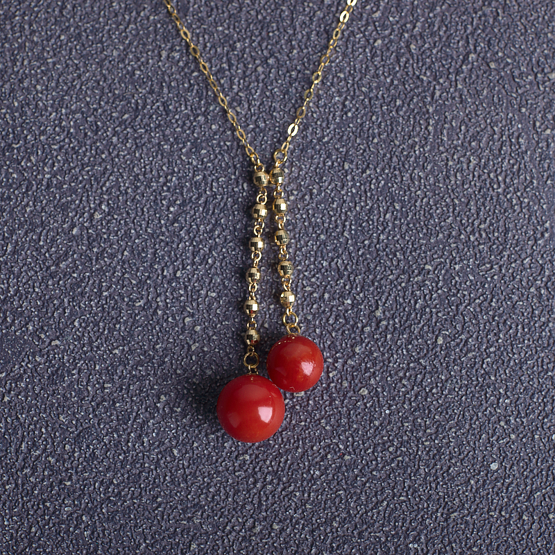 • 18K沙丁牛血红珊瑚圆珠项链