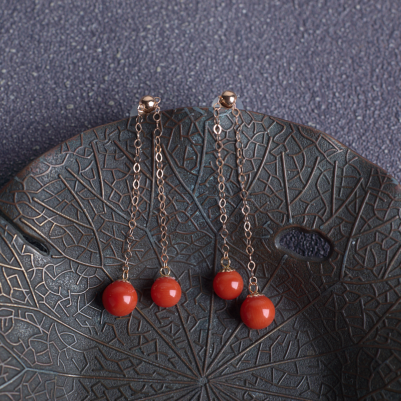 • [名  称] 18K沙丁珊瑚圆珠耳坠