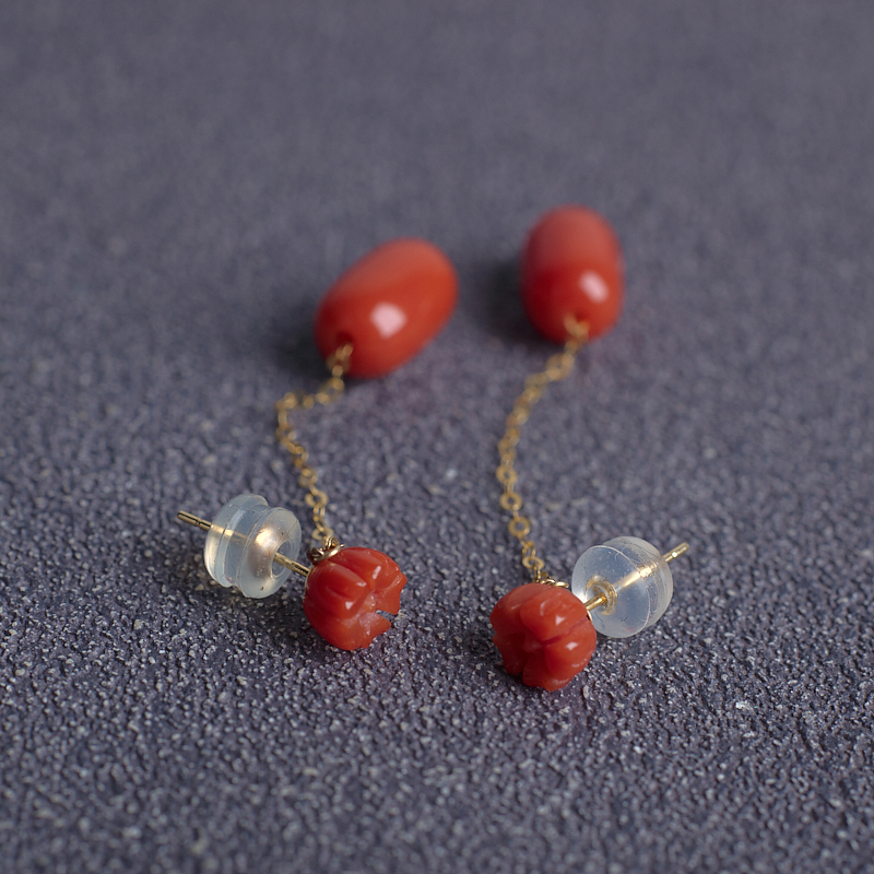 • [名  称] 18K沙丁珊瑚桶珠耳坠