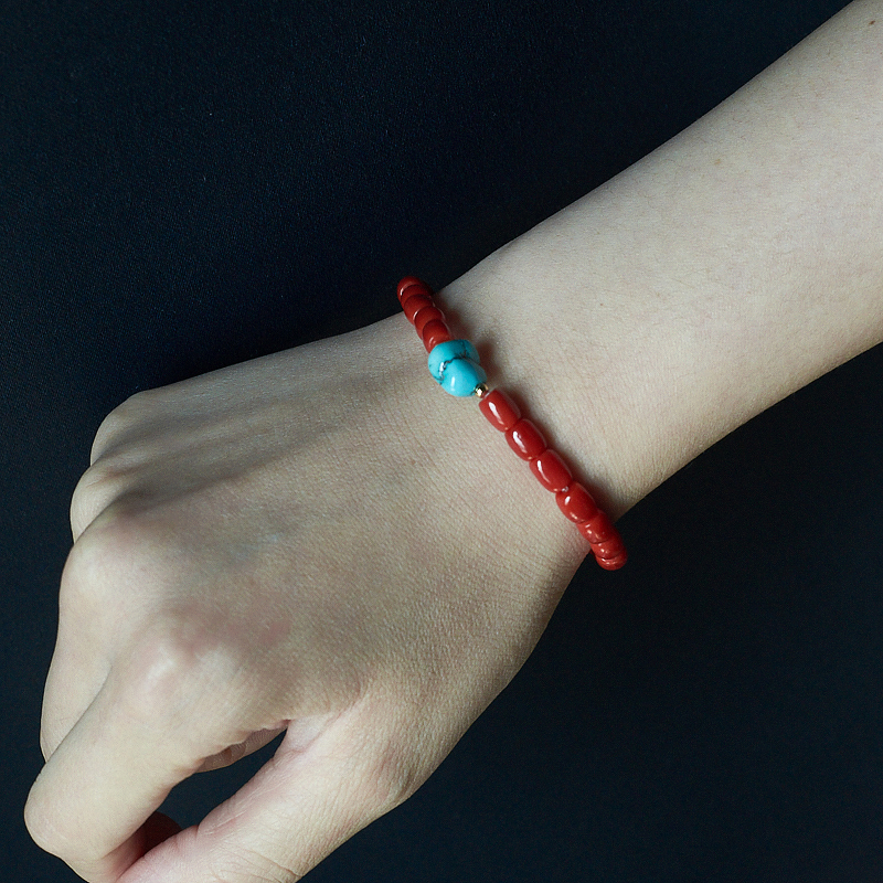 • 沙丁牛血红珊瑚桶珠单圈手串