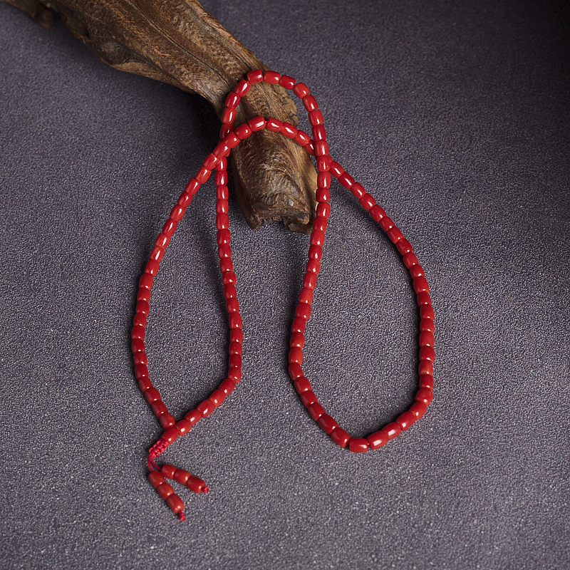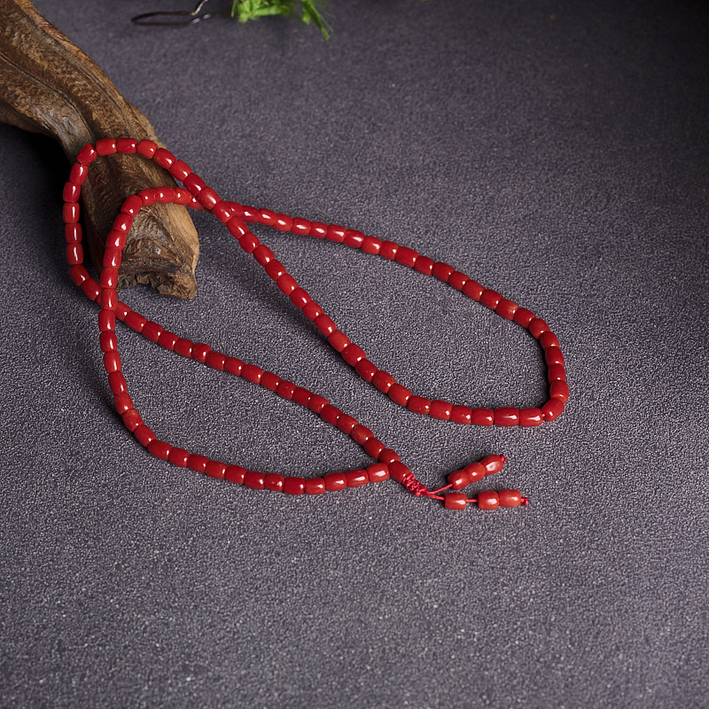 • 沙丁牛血红珊瑚桶珠108佛珠