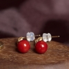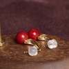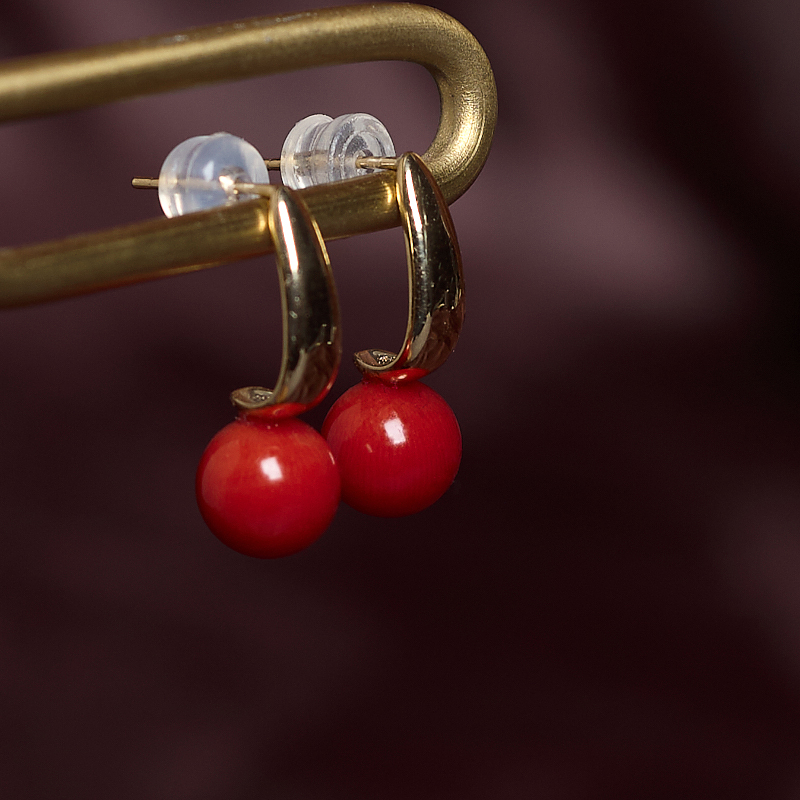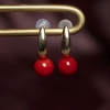 • 18K沙丁牛血红珊瑚圆珠耳环